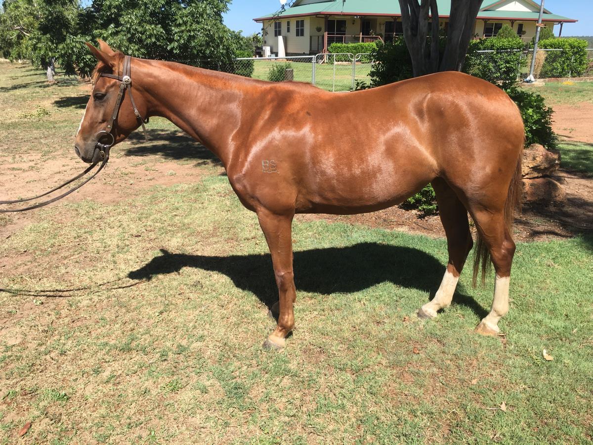 Electra combines three of the most influential campdraft bloodlines of the past ten years - Acres Destiny, Romeo and Conman. She has had mustering and arena work on cattle. Stylish mare with a promising future.