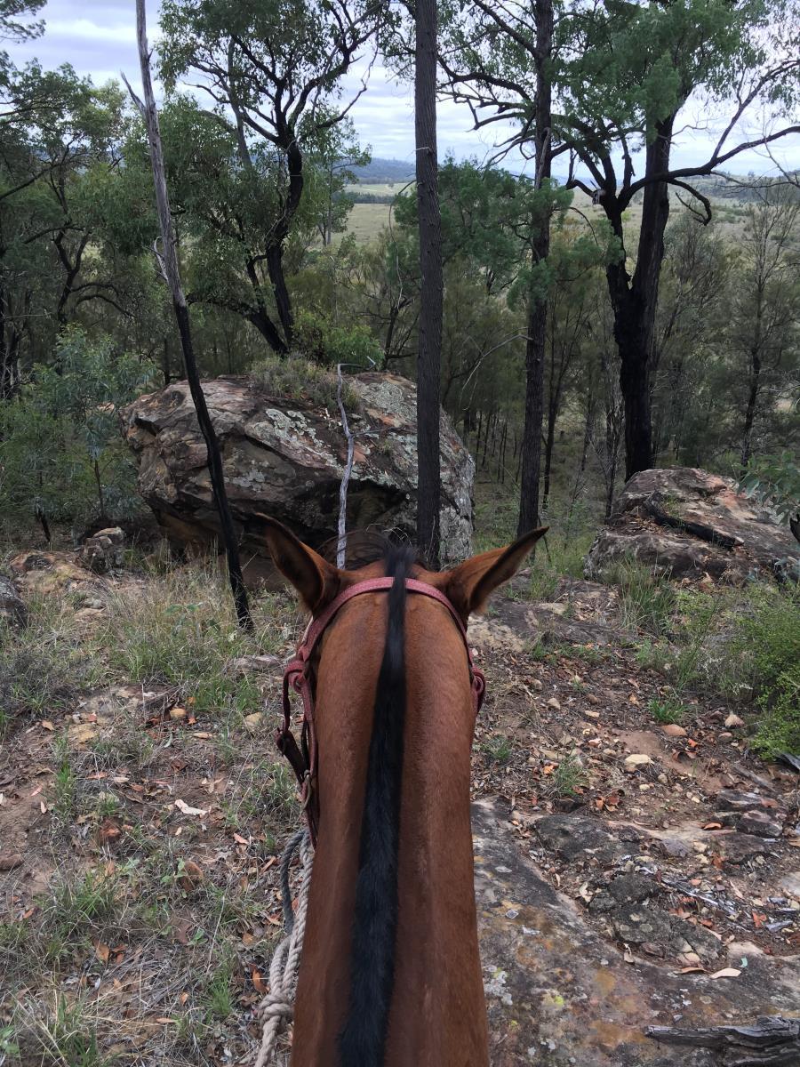 For the last month Doc has had a lot of wet saddle cloths mustering. We have been in all sorts of terrain, around dogs, buggy's, bikes, kids. Chased cows, weaner's and had calves all around us. We haven't done much arena work just what I can do in the paddock! Doc likes to chase cattle and is cowy. He has done the miles ready for any training discipline.