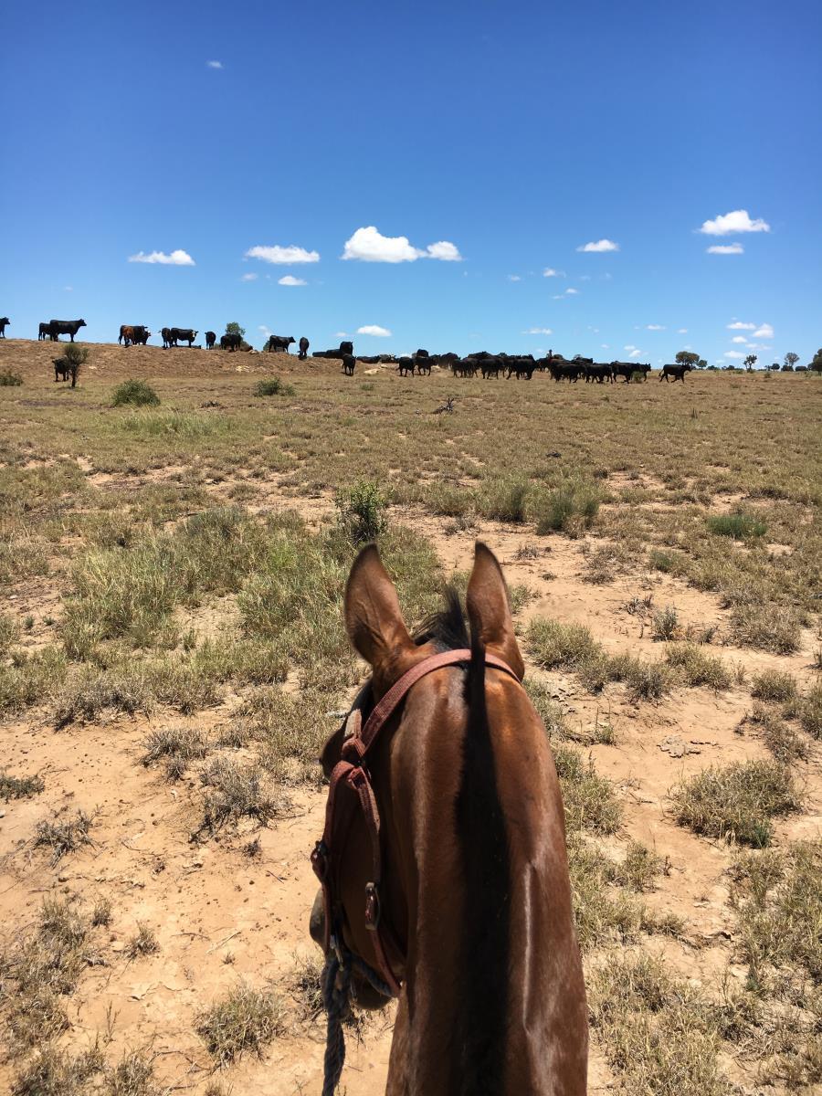For the last month Rickie has had a lot of wet saddle cloths mustering. We have been in all sorts of terrain, around dogs, buggy's, bikes, kids. Chased cows, weaner's and had calves all around us. We haven't done much arena work just what I can do in the paddock! Rickie likes to chase cattle and is cowy. She has done the miles ready for any training discipline.