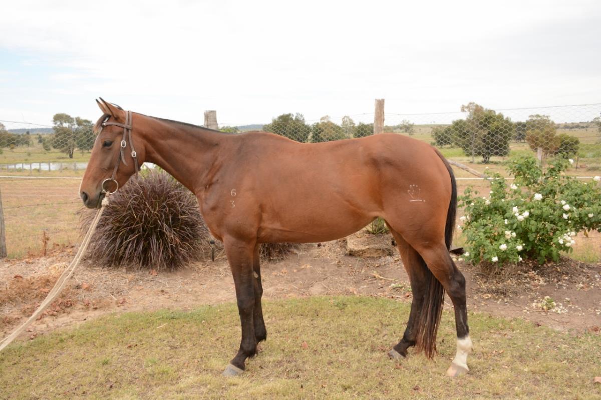 Rickie has done miles mustering, ridden by a lady. She has a basic flat work foundation and started on cattle. Check out our web site for updates up until the sale, www.barnonestockhorses.com.au.
