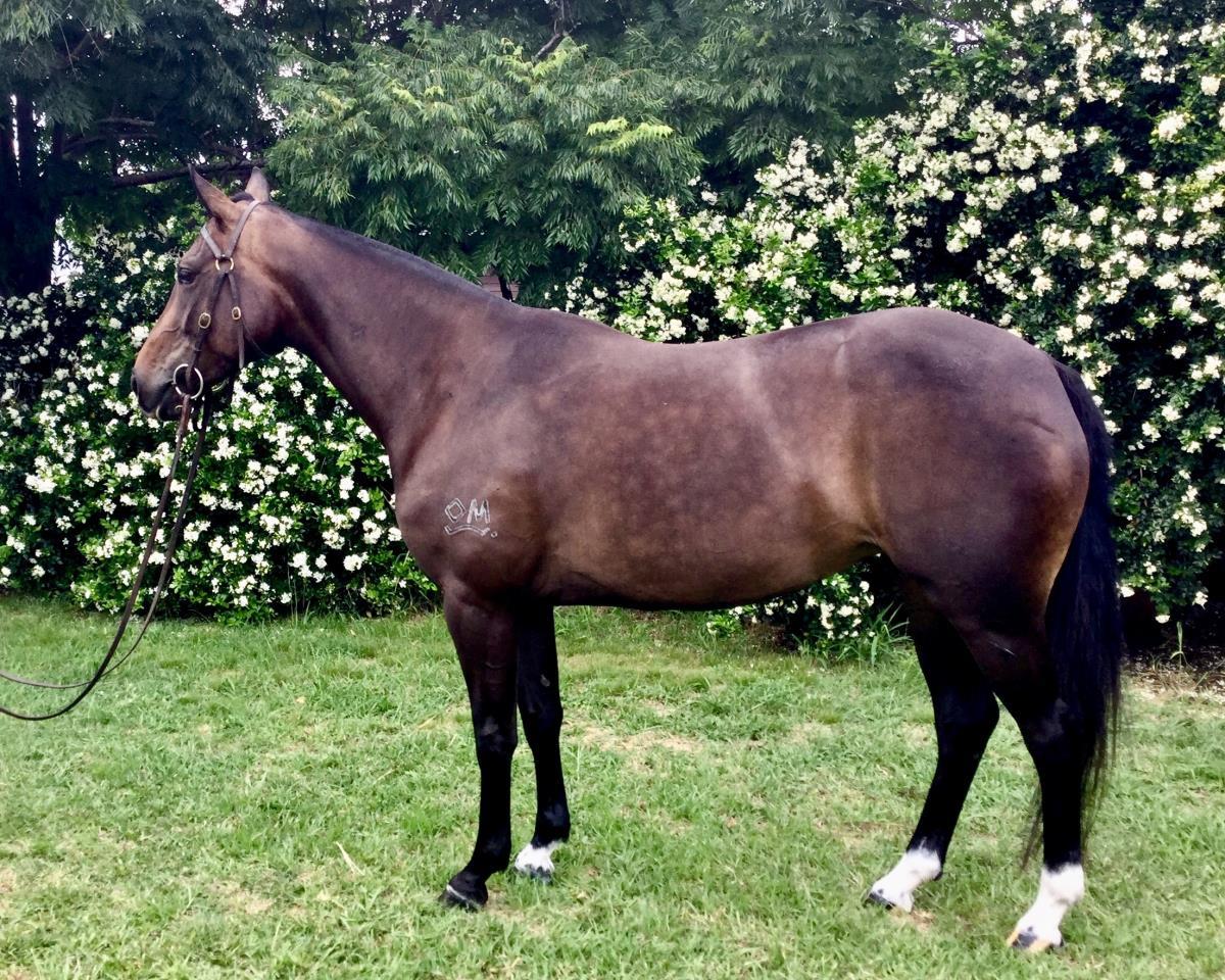 The mark visible on the upper left thigh is from an old skin wound that was sutured and healed without complication. No lameness was present at the time of injury or since. A vet report is available on request.