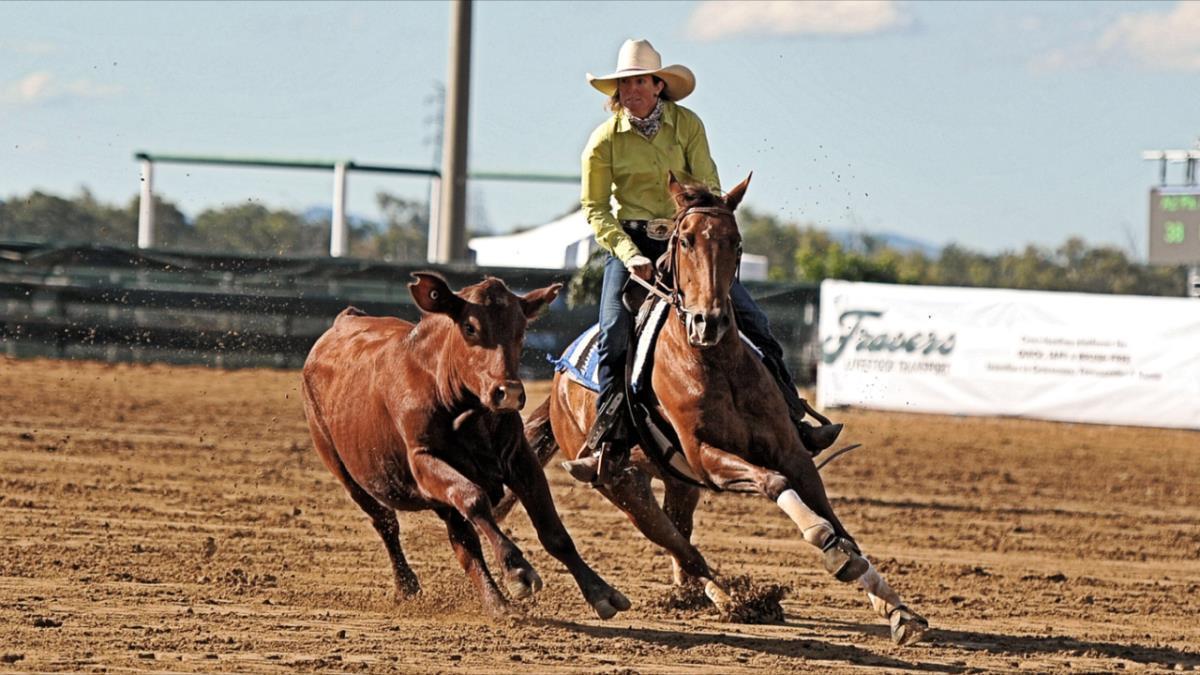 Dual registered, 5 year old mare, working here, bridle-less, with trainer Regan Lyons, from Top Gun Horse Training, Ridgelands, QLD. Top Gun is run by Regan and Katherine Lyons.