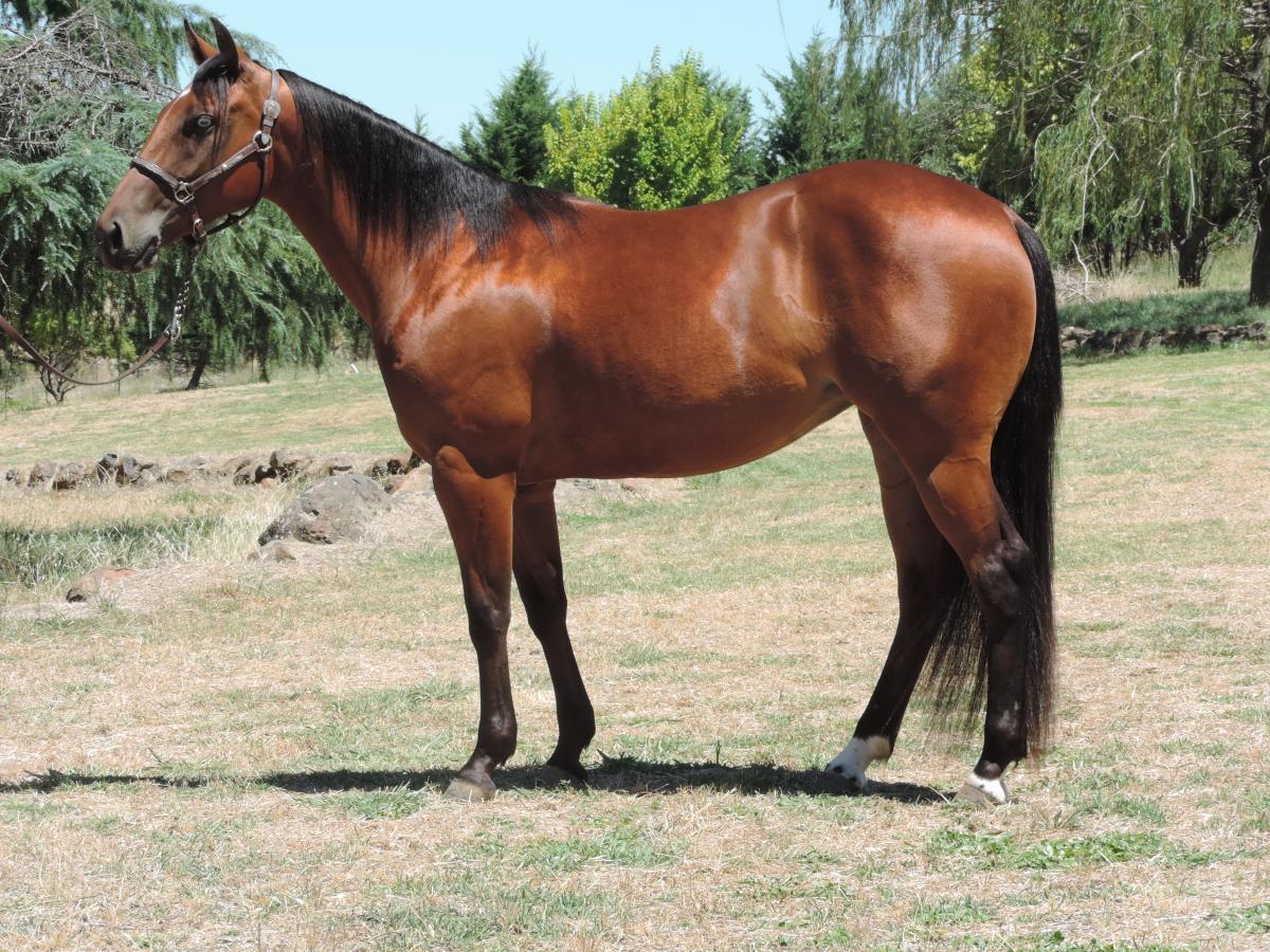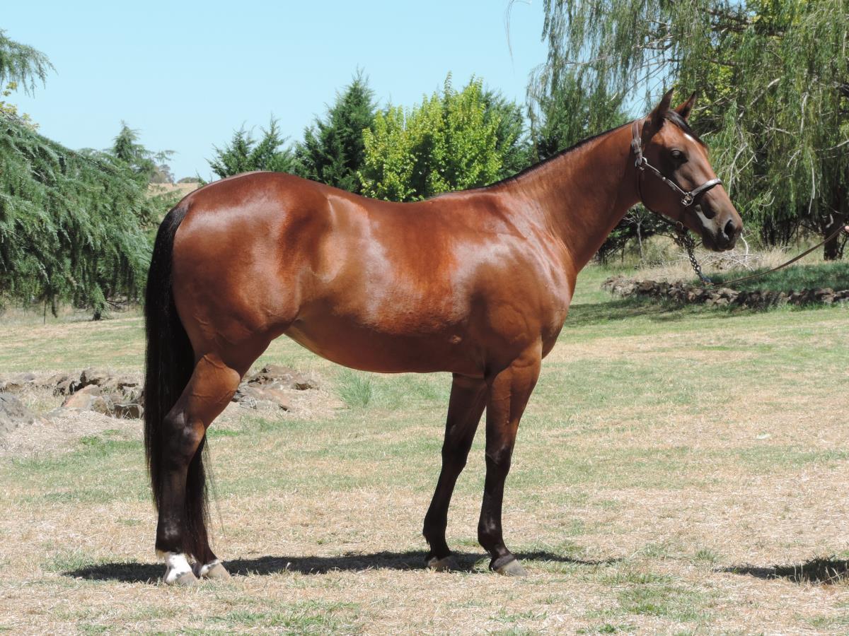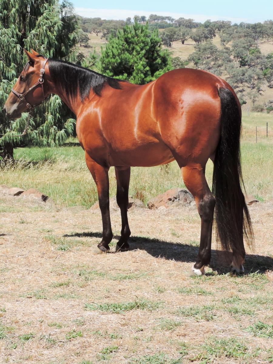 Well started, had light mustering experience and professionally started on cattle. Expected to mature around 14.2hh. Del is a kind, quiet, good-minded, quality filly.