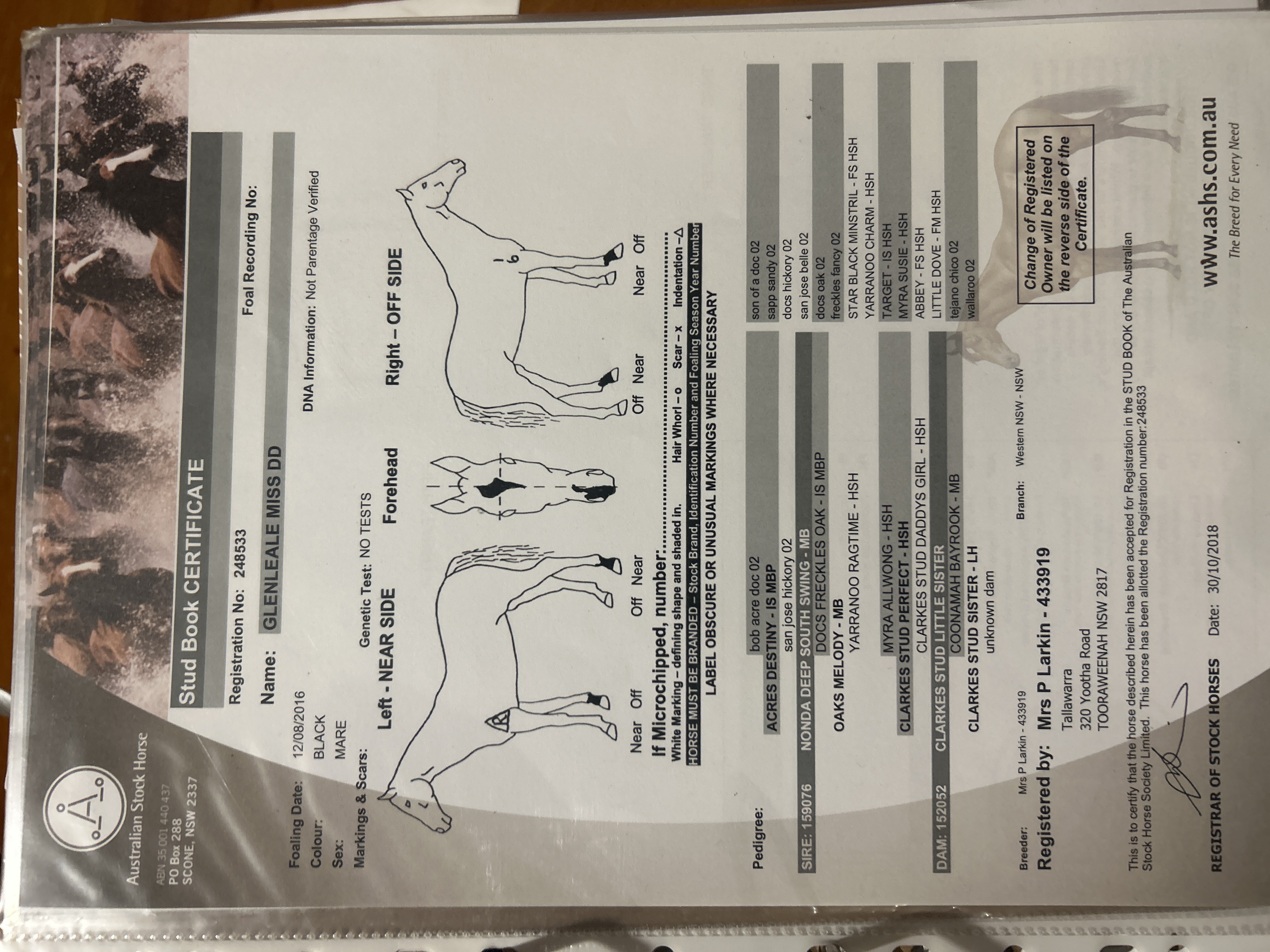 Miss DD's dam is the full sister to Clarkes Stud Perfect Son (Warwick Gold Cup winner ). The stud has retained 3 full sisters to Miss DD , all ridden by children in Campdraft, pony club and the showring.