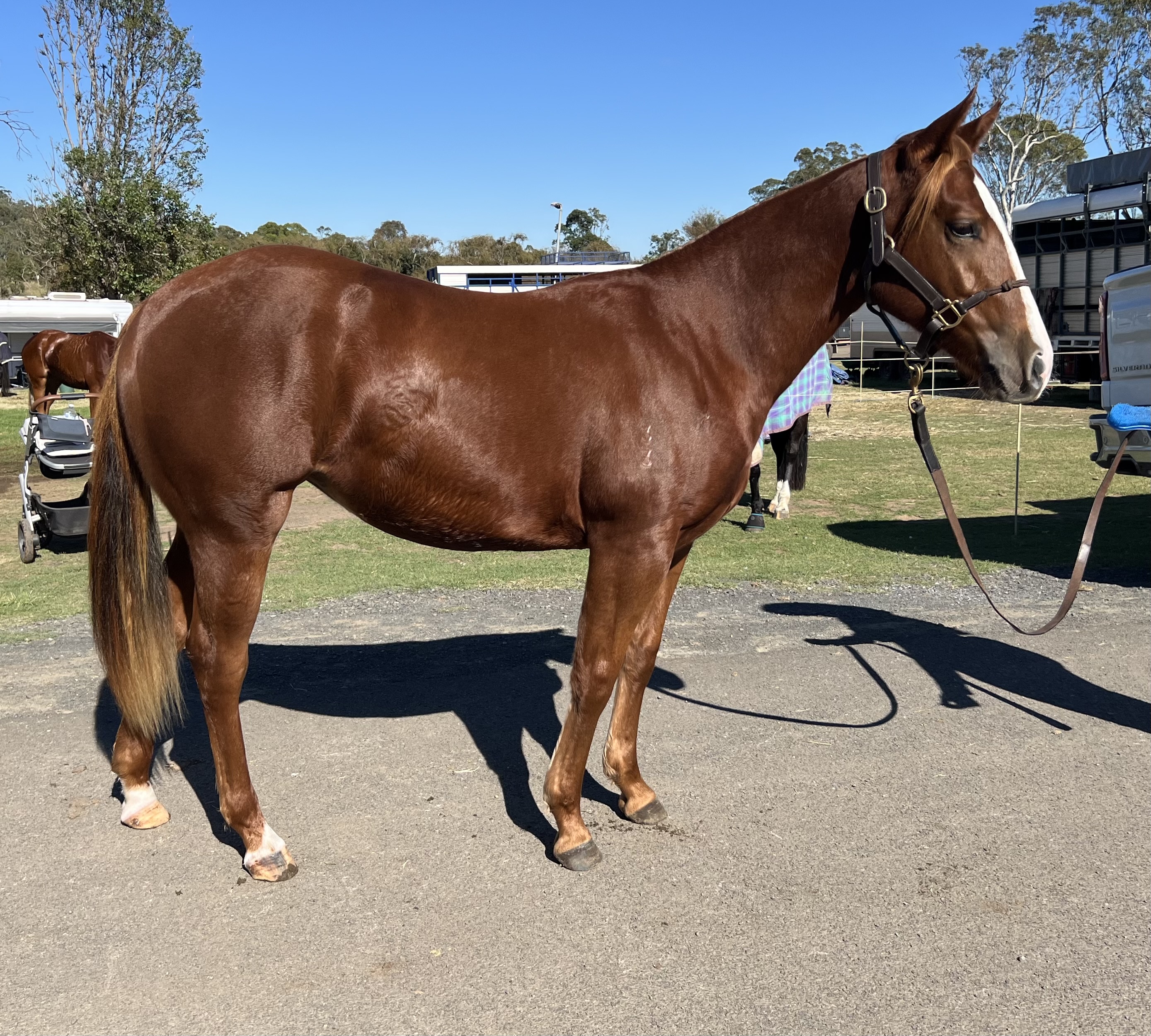 Lovely kind filly that would excel in the cutting pen or cow horse disciplines. Would suit the whole family in the future.