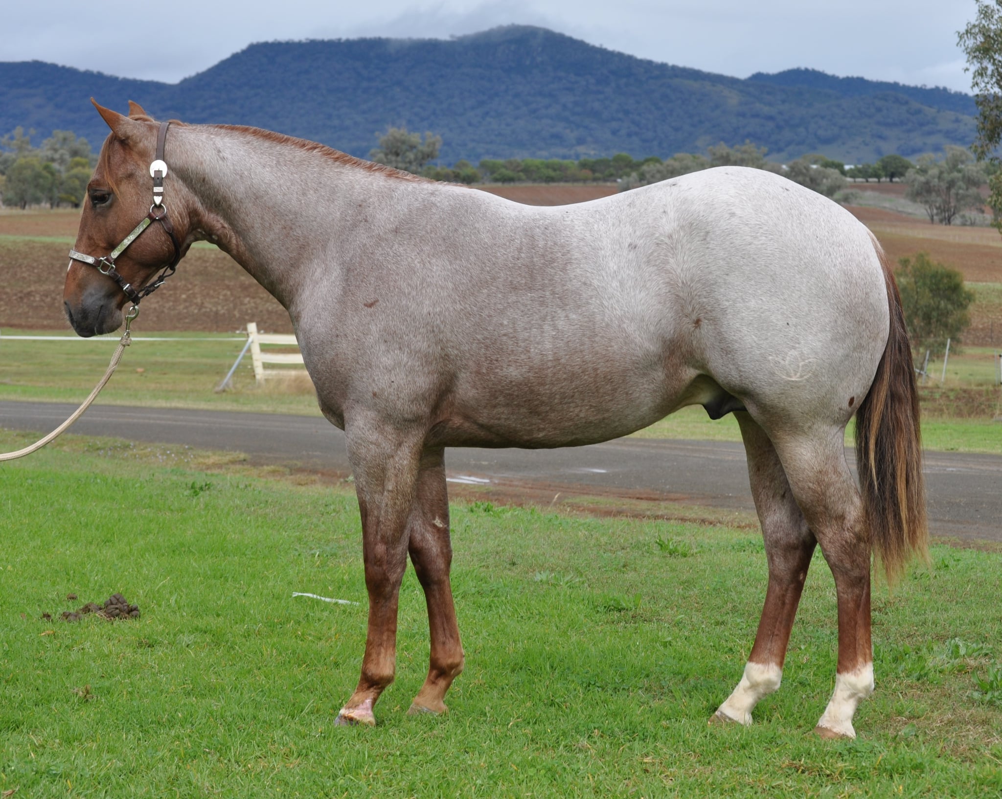 Stunning Red Roan Colt, Full Brother to Bad in Black, Half Brother to Metal As Anything Good Minded, trainable Very nice mover From a family of money earners