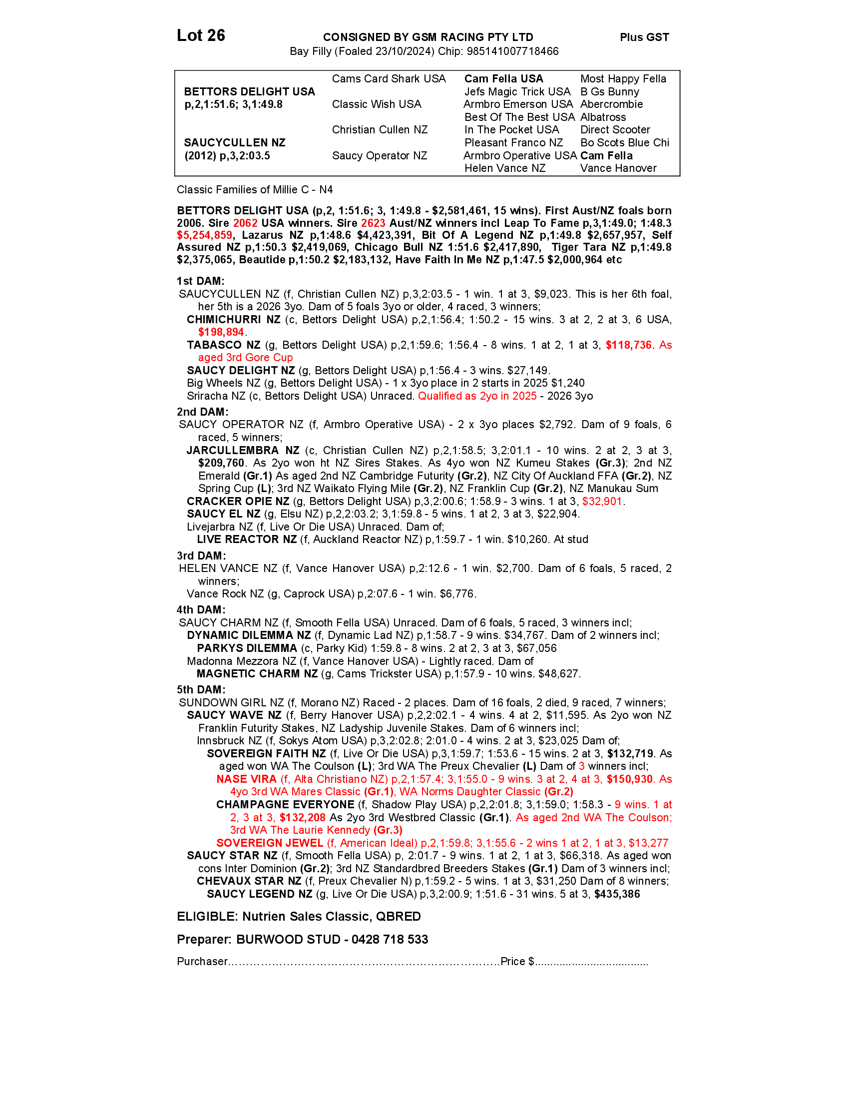 SAUCYCULLEN NZ 2024 FILLY