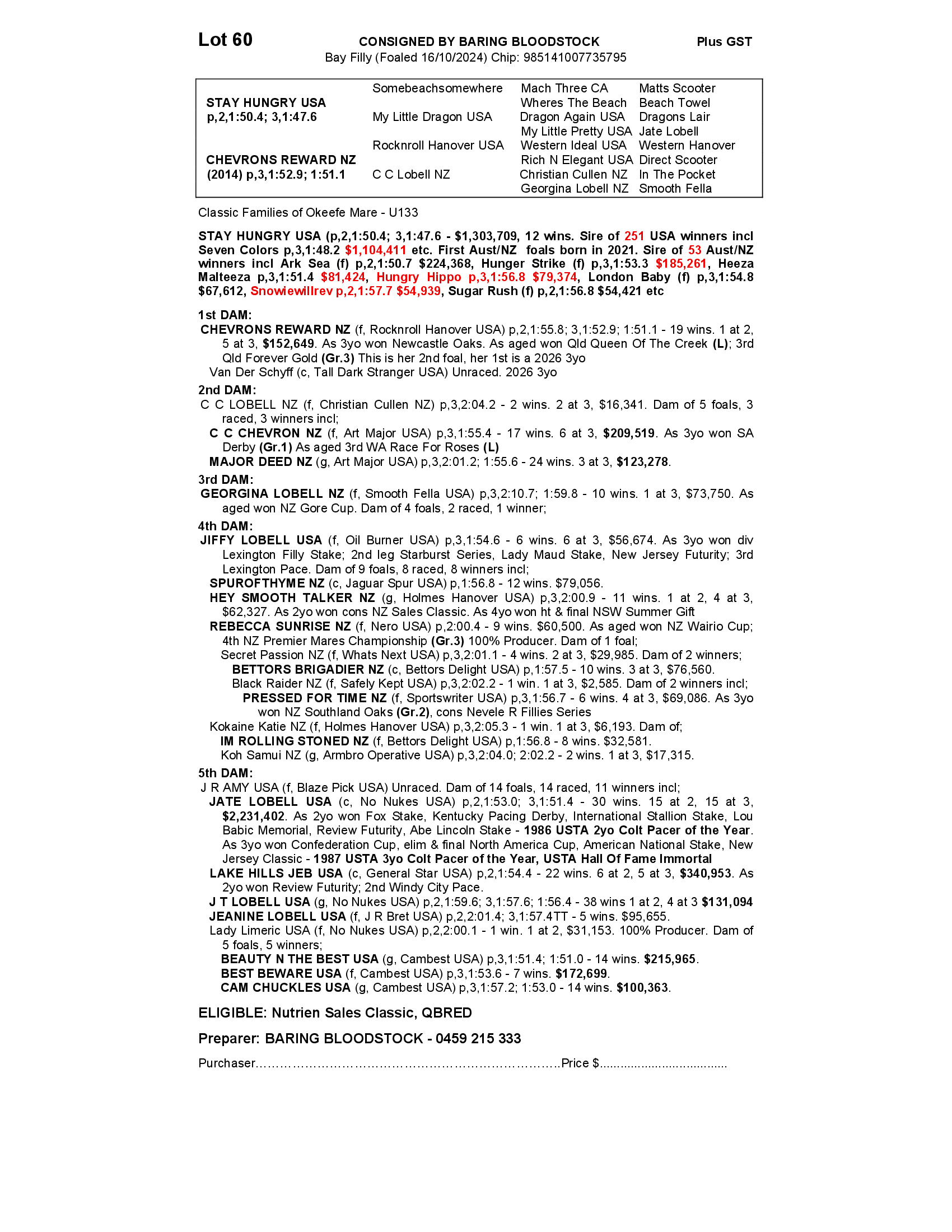 CHEVRONS REWARD NZ 2024 FILLY