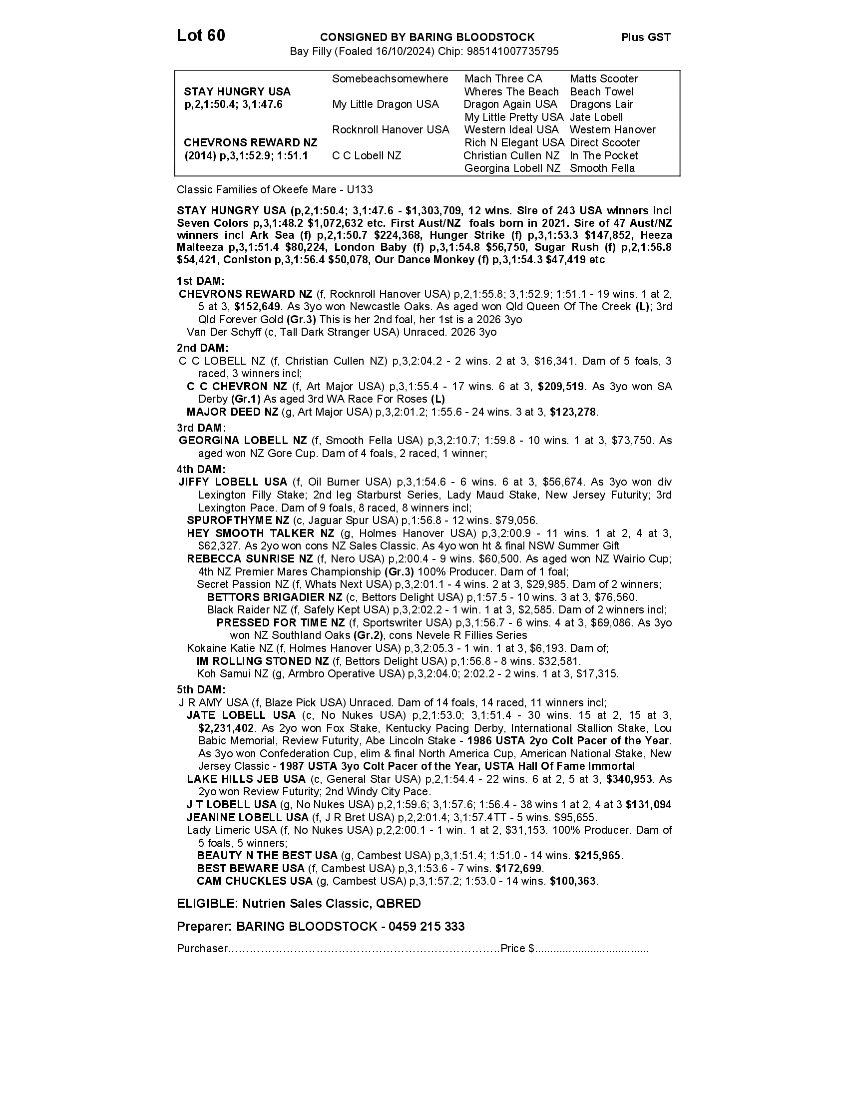 CHEVRONS REWARD NZ 2024 FILLY