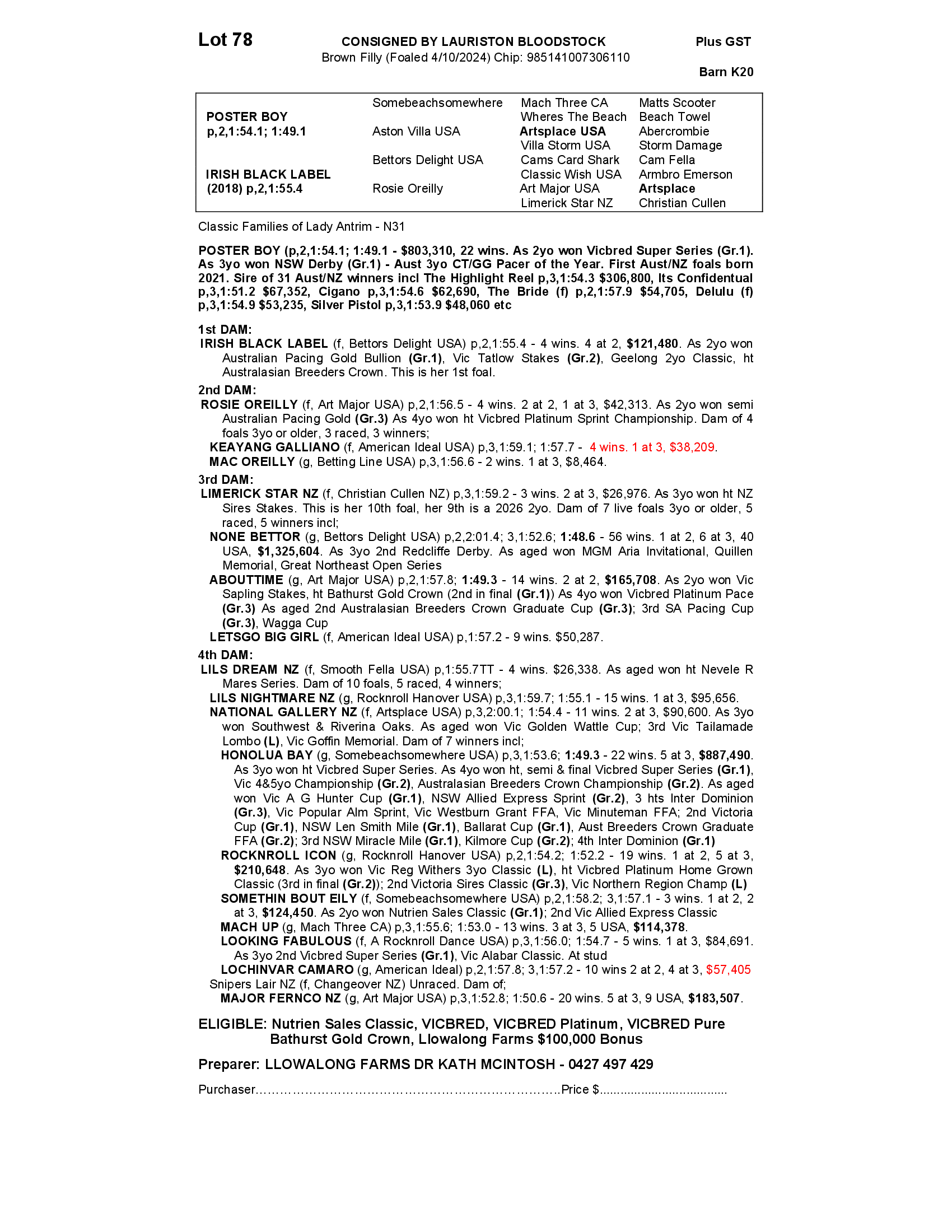 IRISH BLACK LABEL 2024 FILLY
