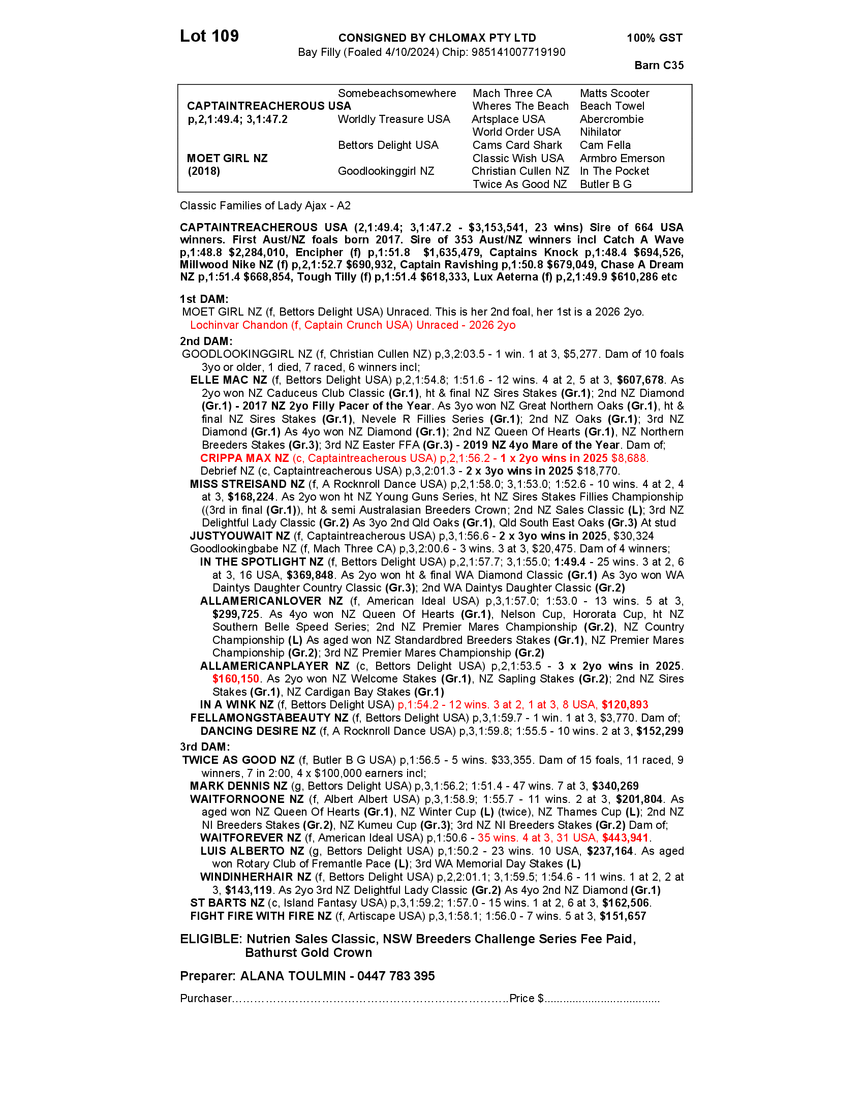 MOET GIRL NZ 2024 FILLY