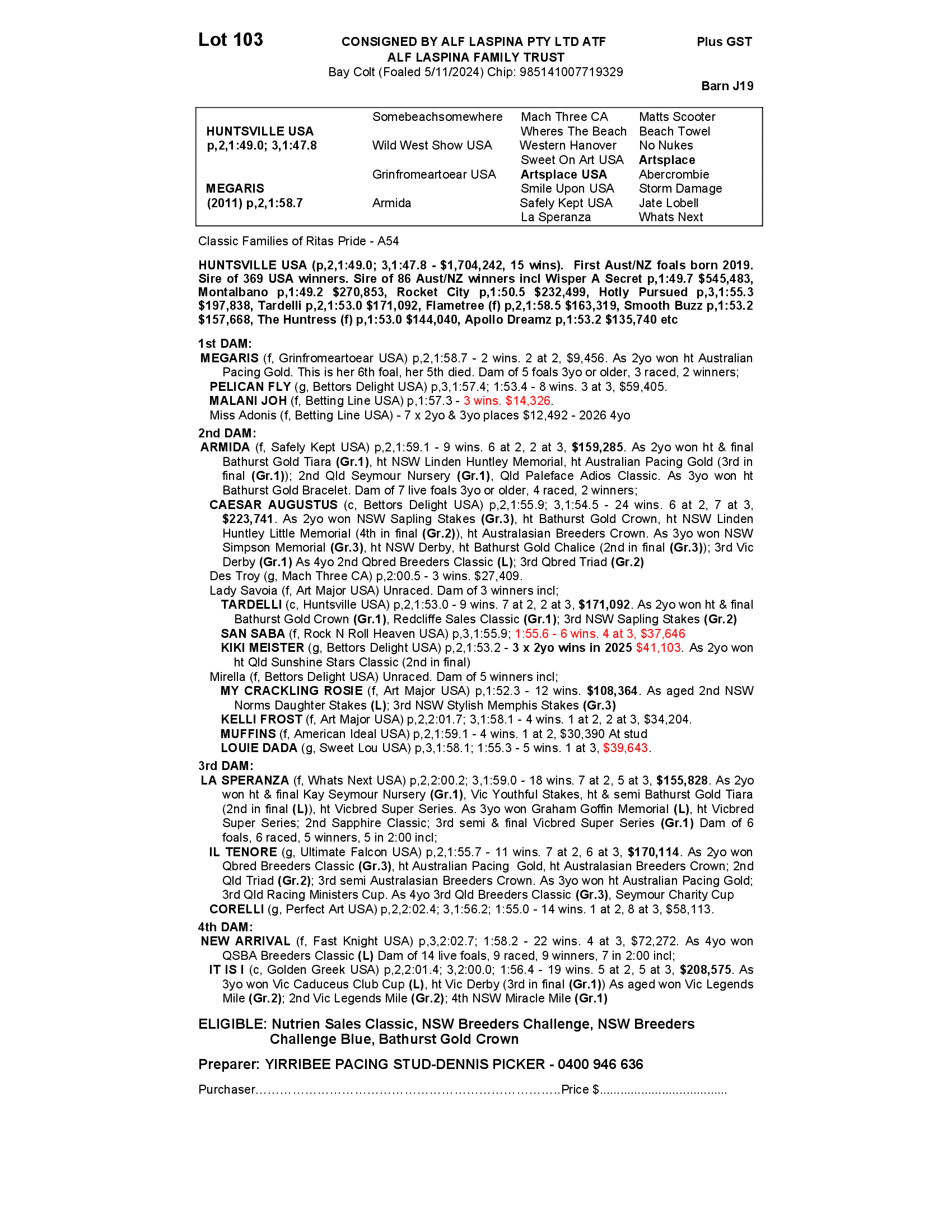YIRRIBEE PACING STUD - DENNIS PICKER
