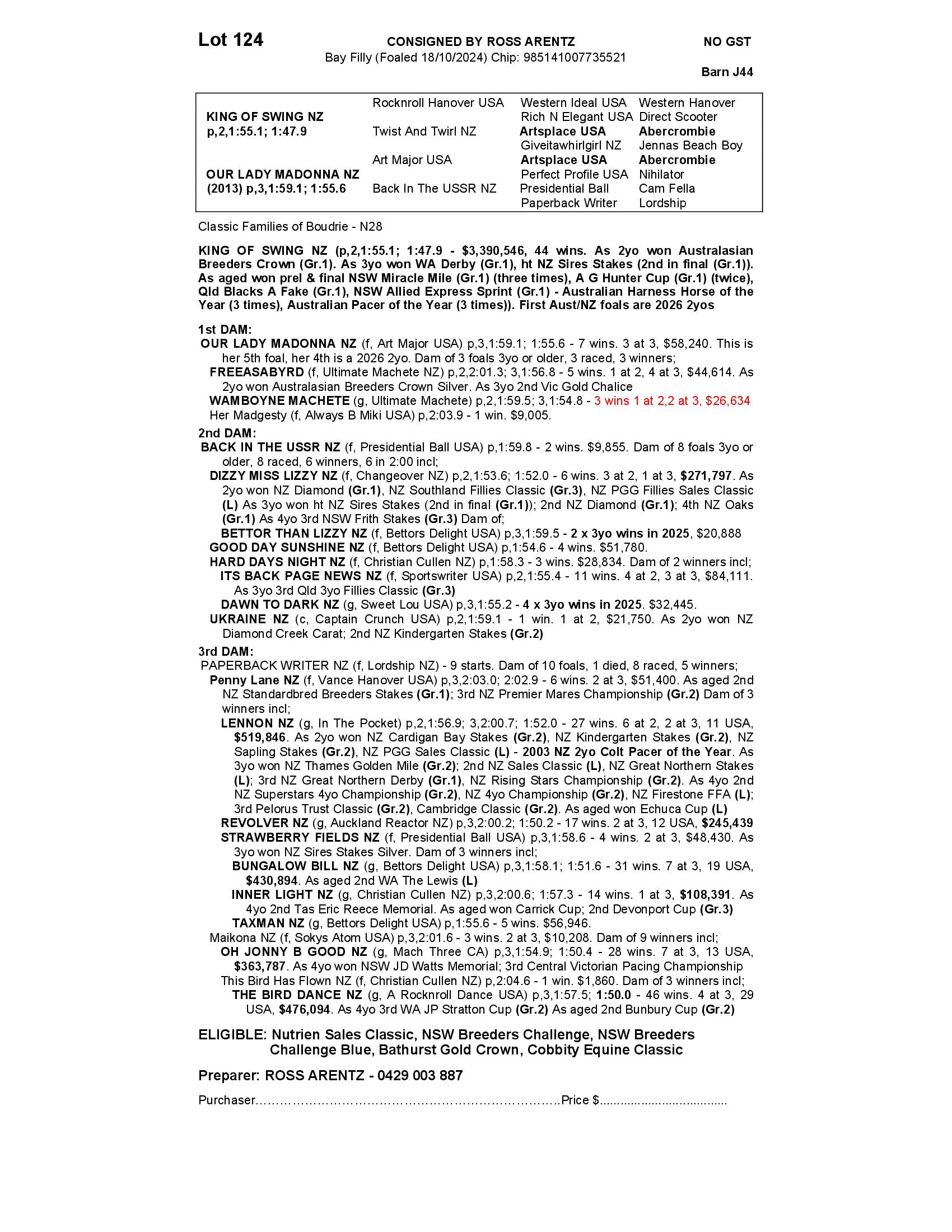 OUR LADY MADONNA NZ 2024 FILLY
