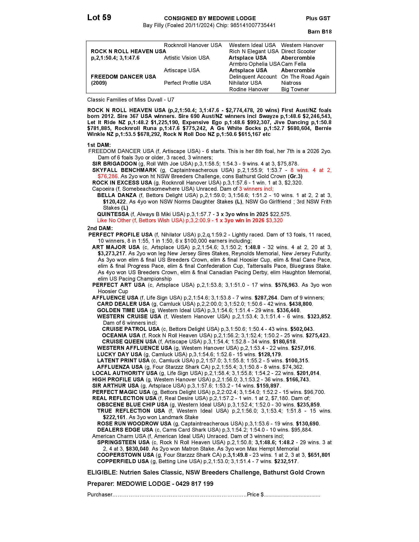 FREEDOM DANCER USA 2024 FILLY