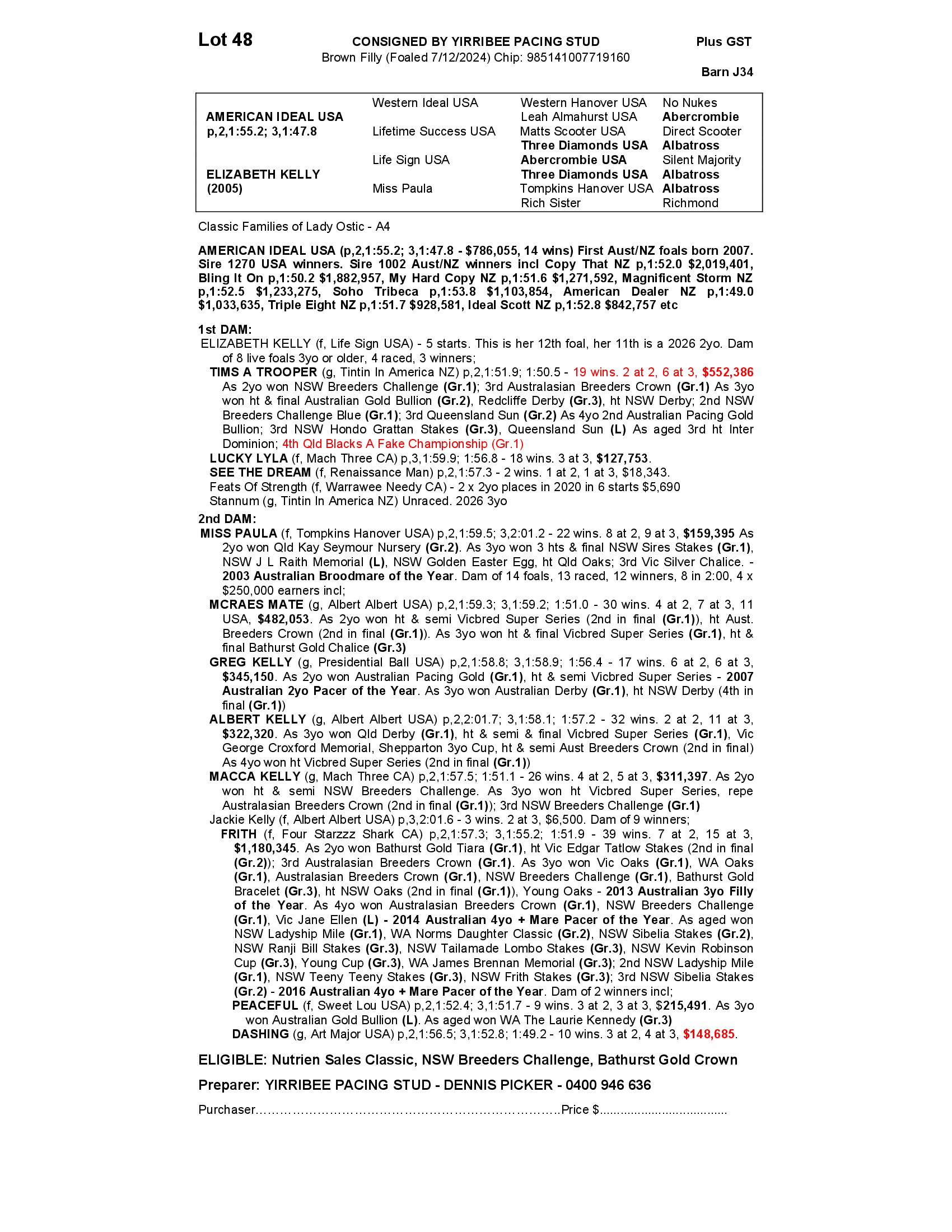 YIRRIBEE PACING STUD - DENNIS PICKER