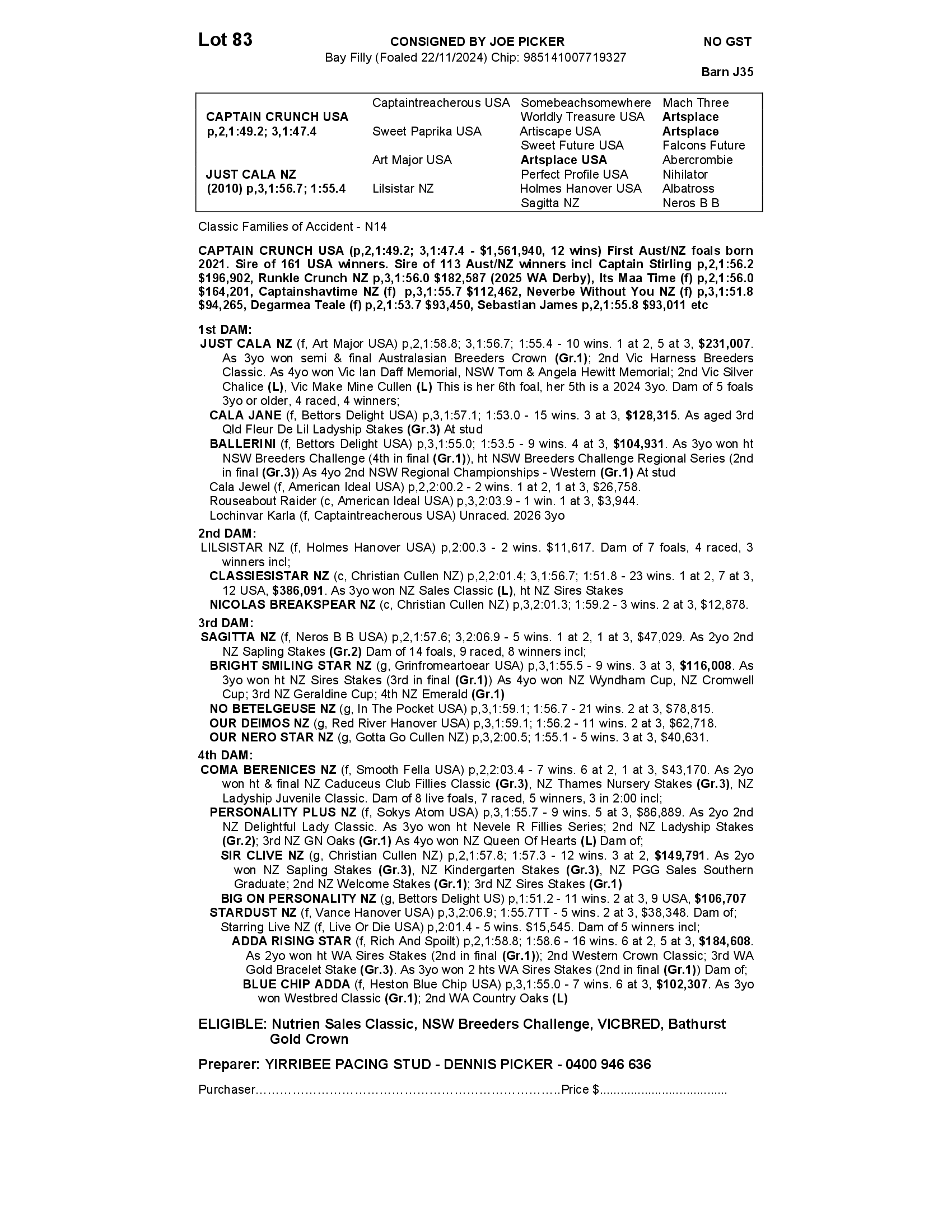 YIRRIBEE PACING STUD - DENNIS PICKER