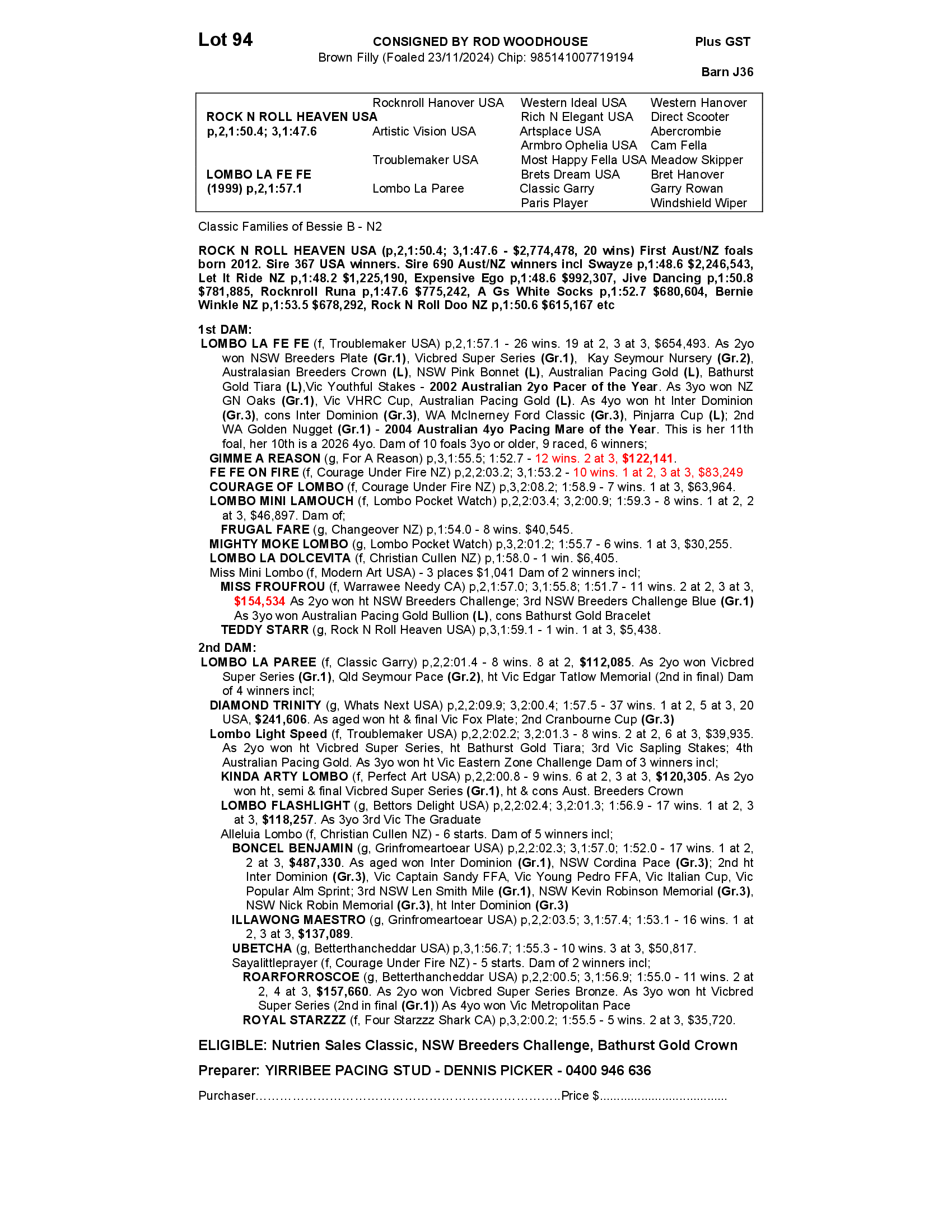 YIRRIBEE PACING STUD - DENNIS PICKER