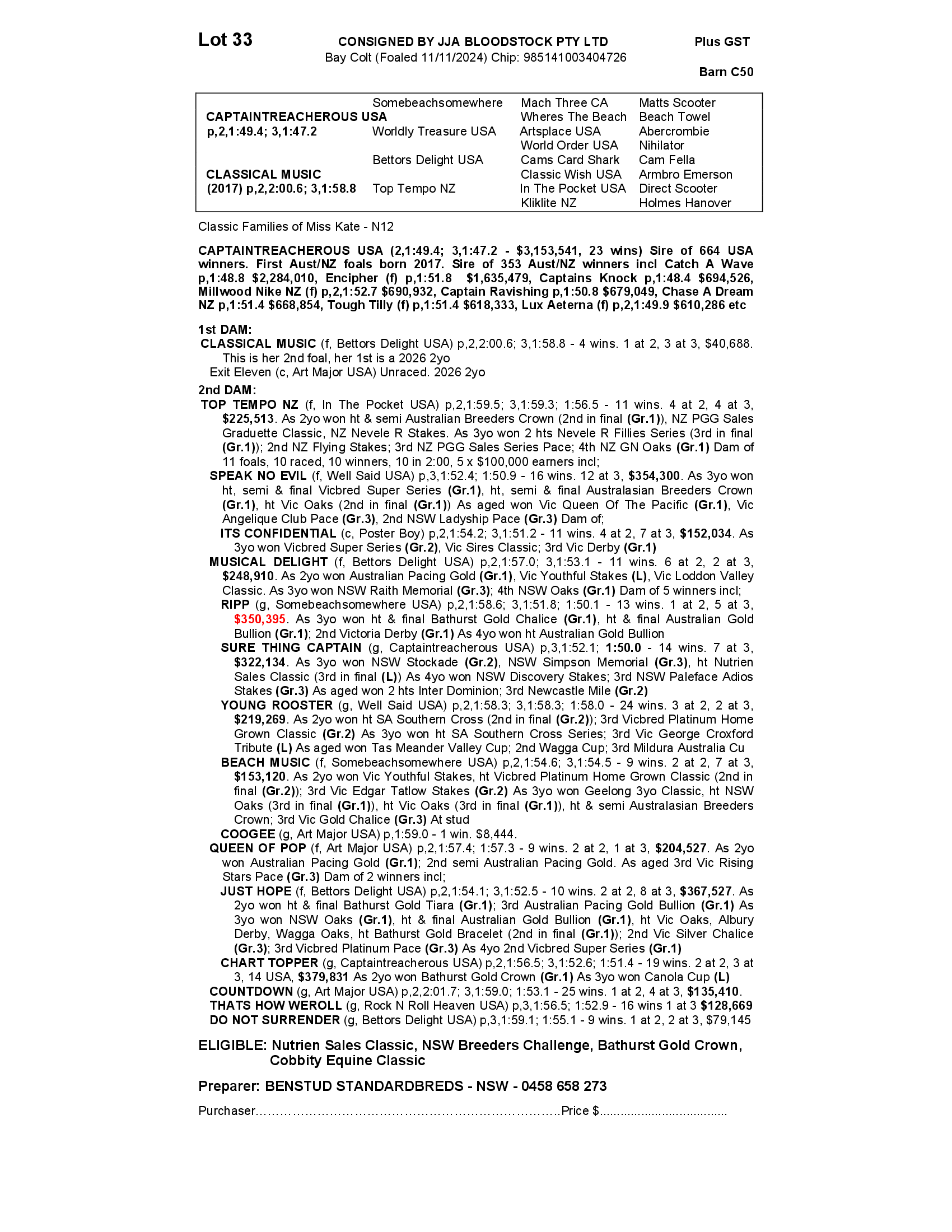 Cobbitty Classic eligible.