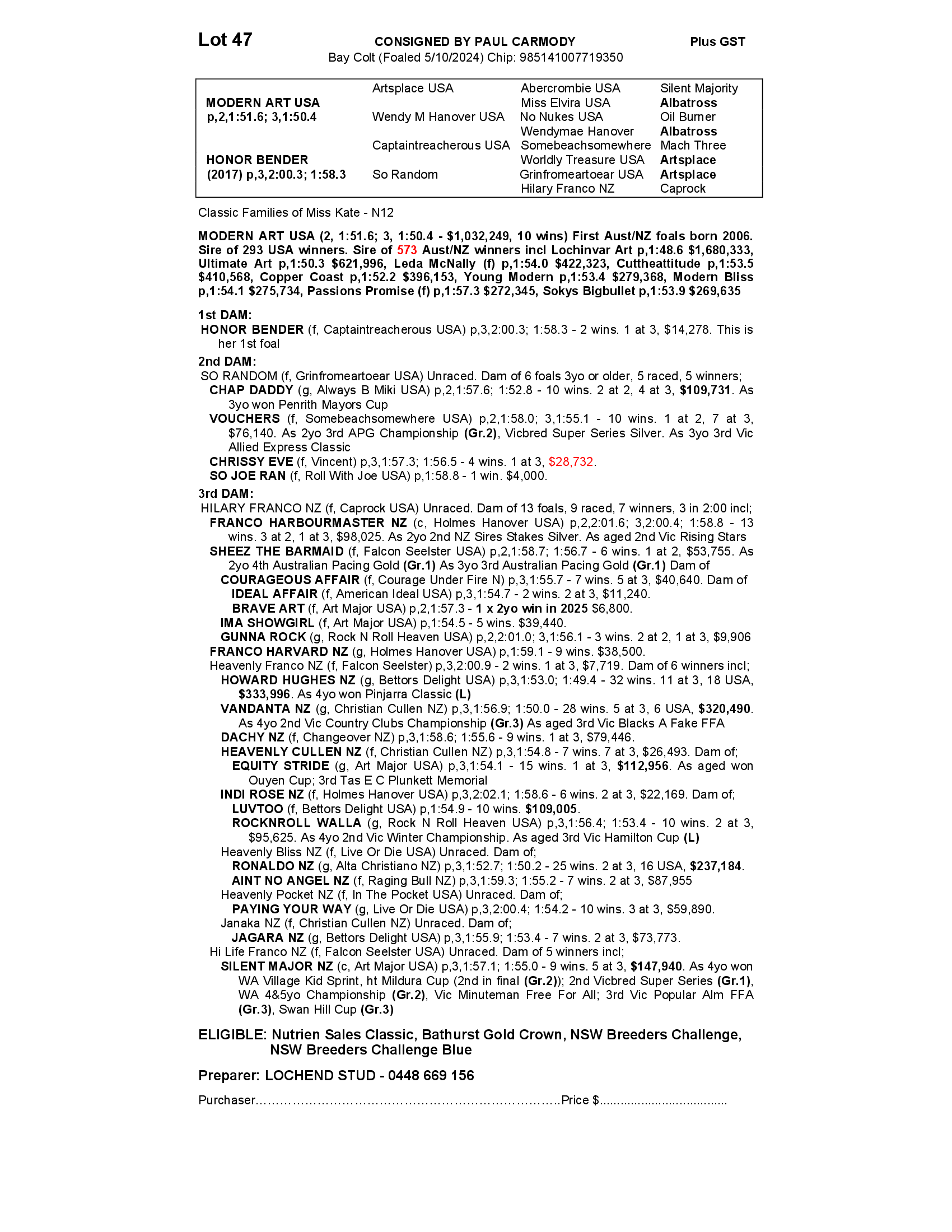HONOR BENDER 2024 COLT