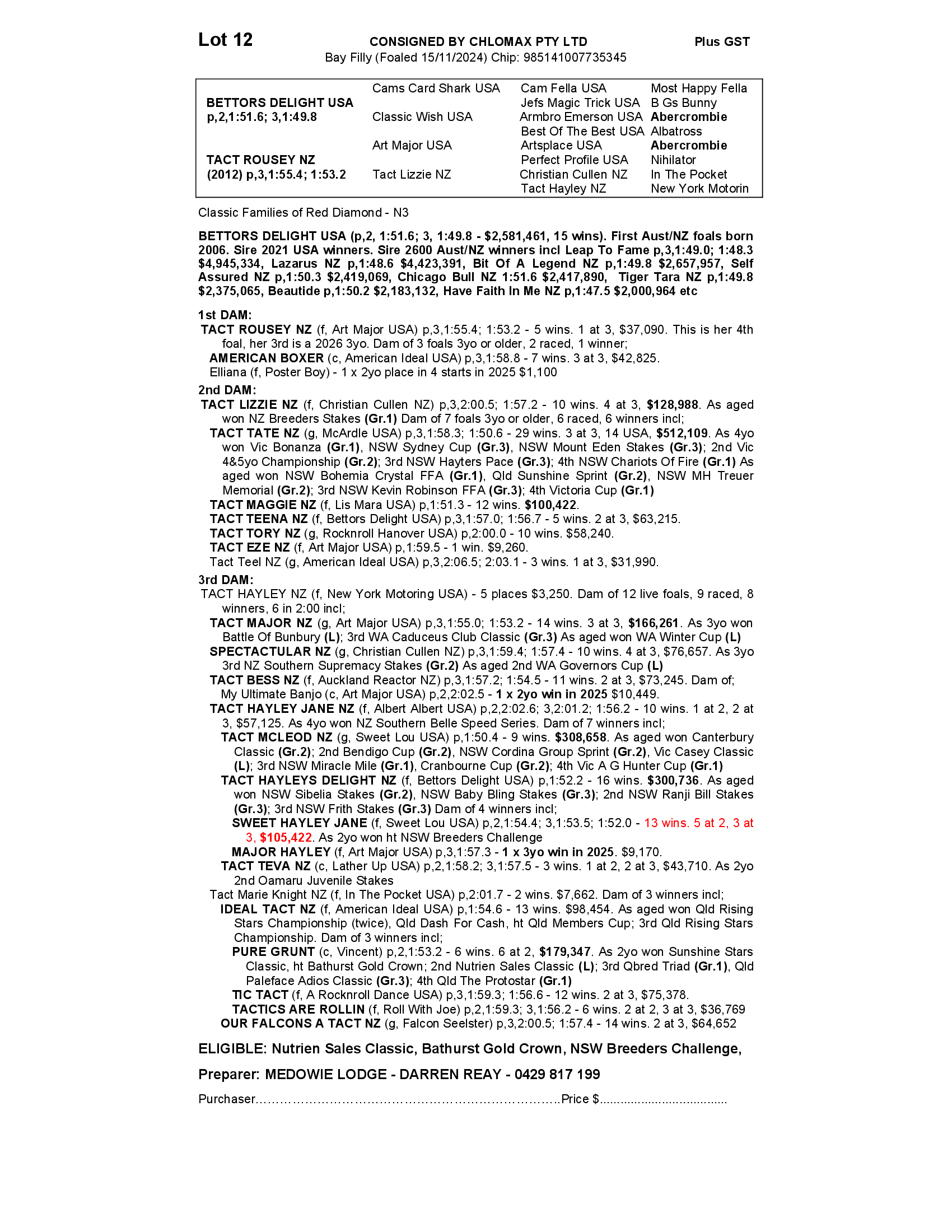TACT ROUSEY NZ 2024 FILLY