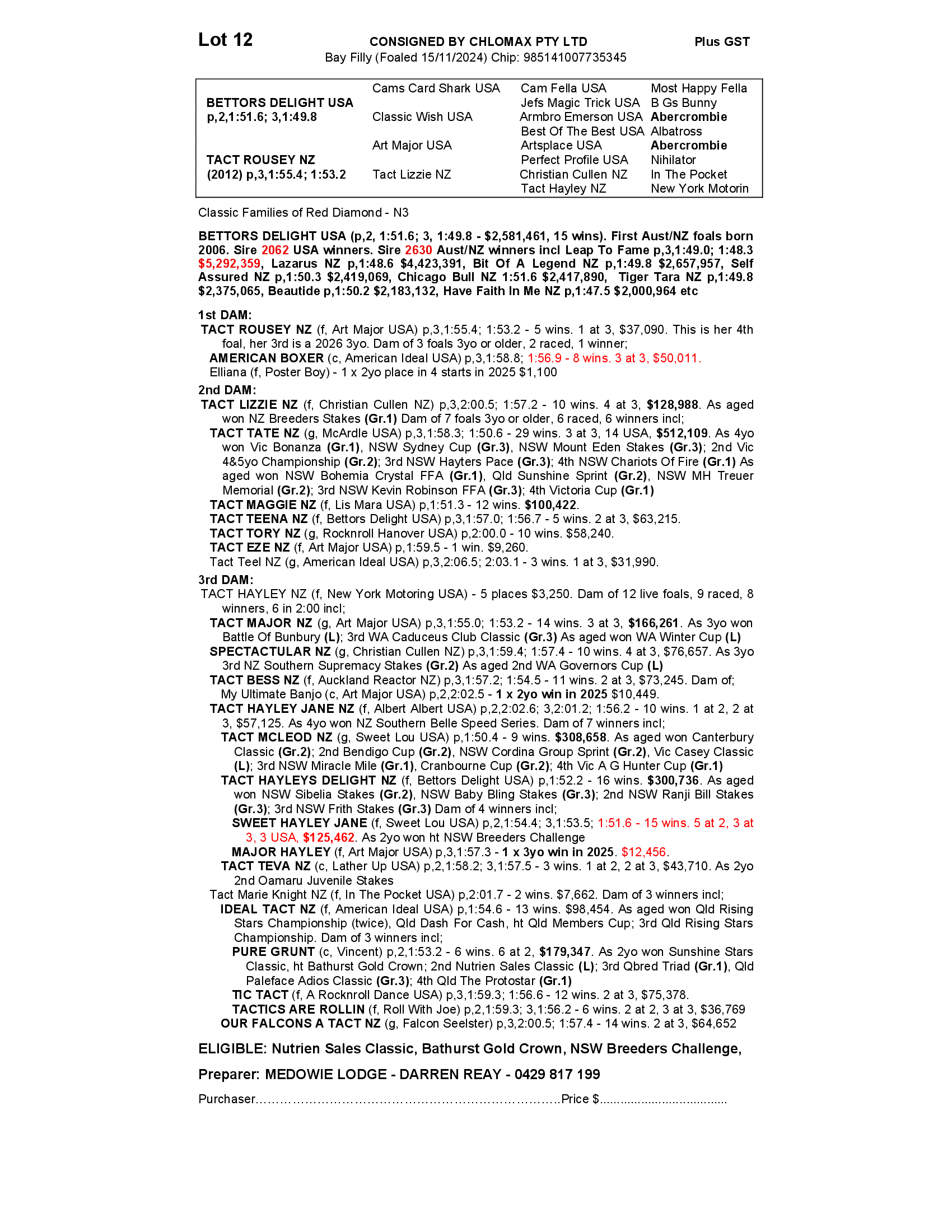 TACT ROUSEY NZ 2024 FILLY