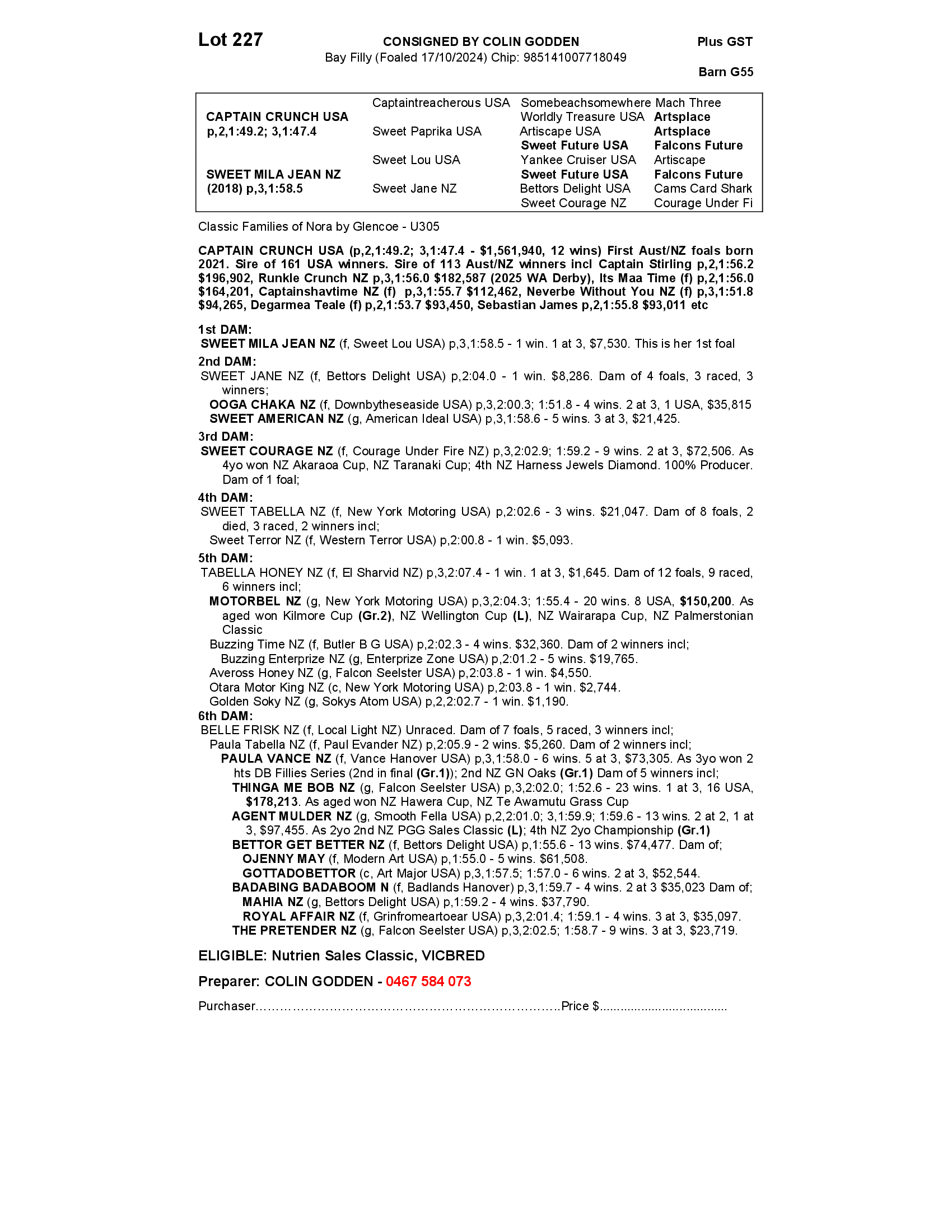 SWEET MILA JEAN NZ 2024 FILLY