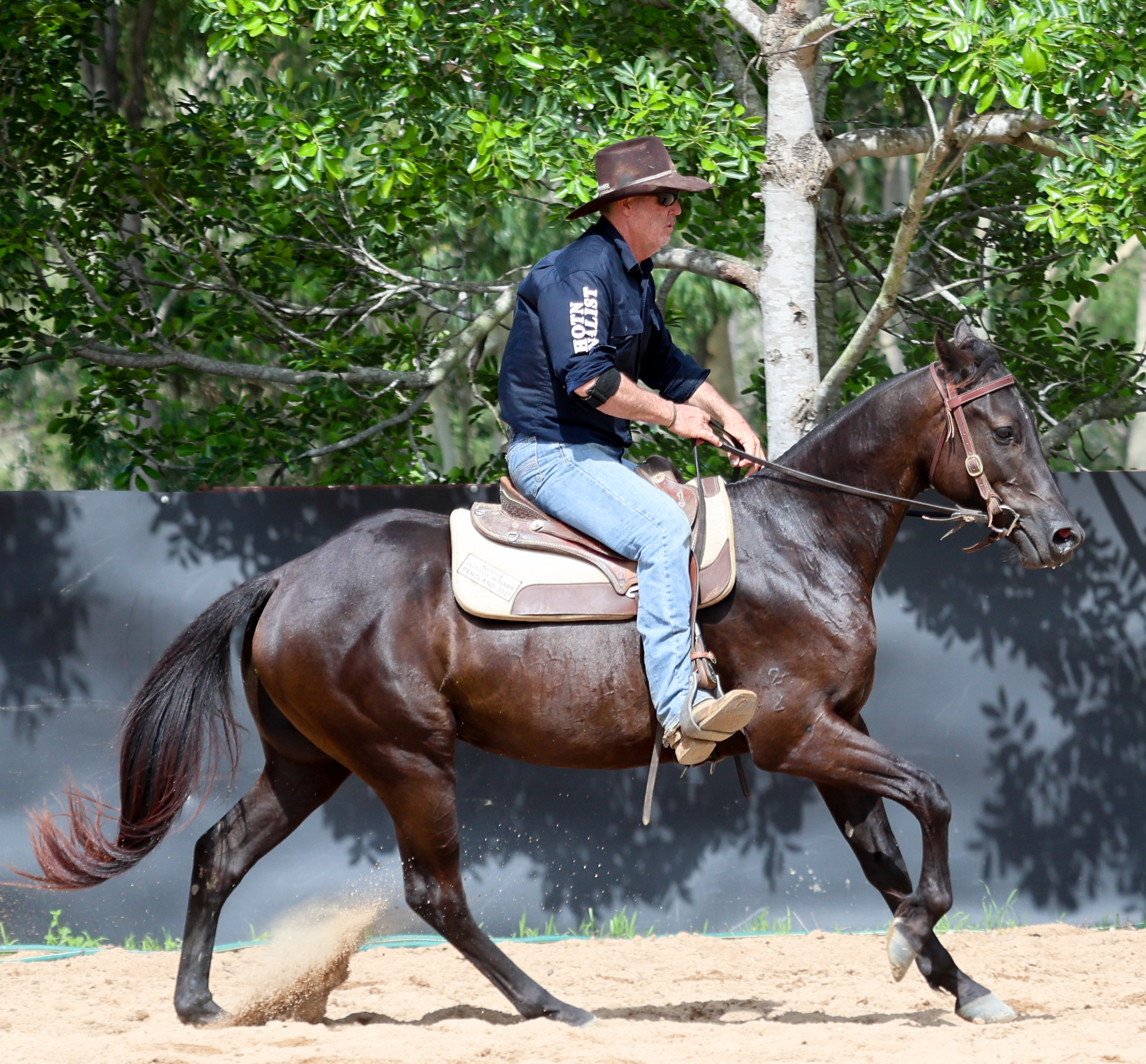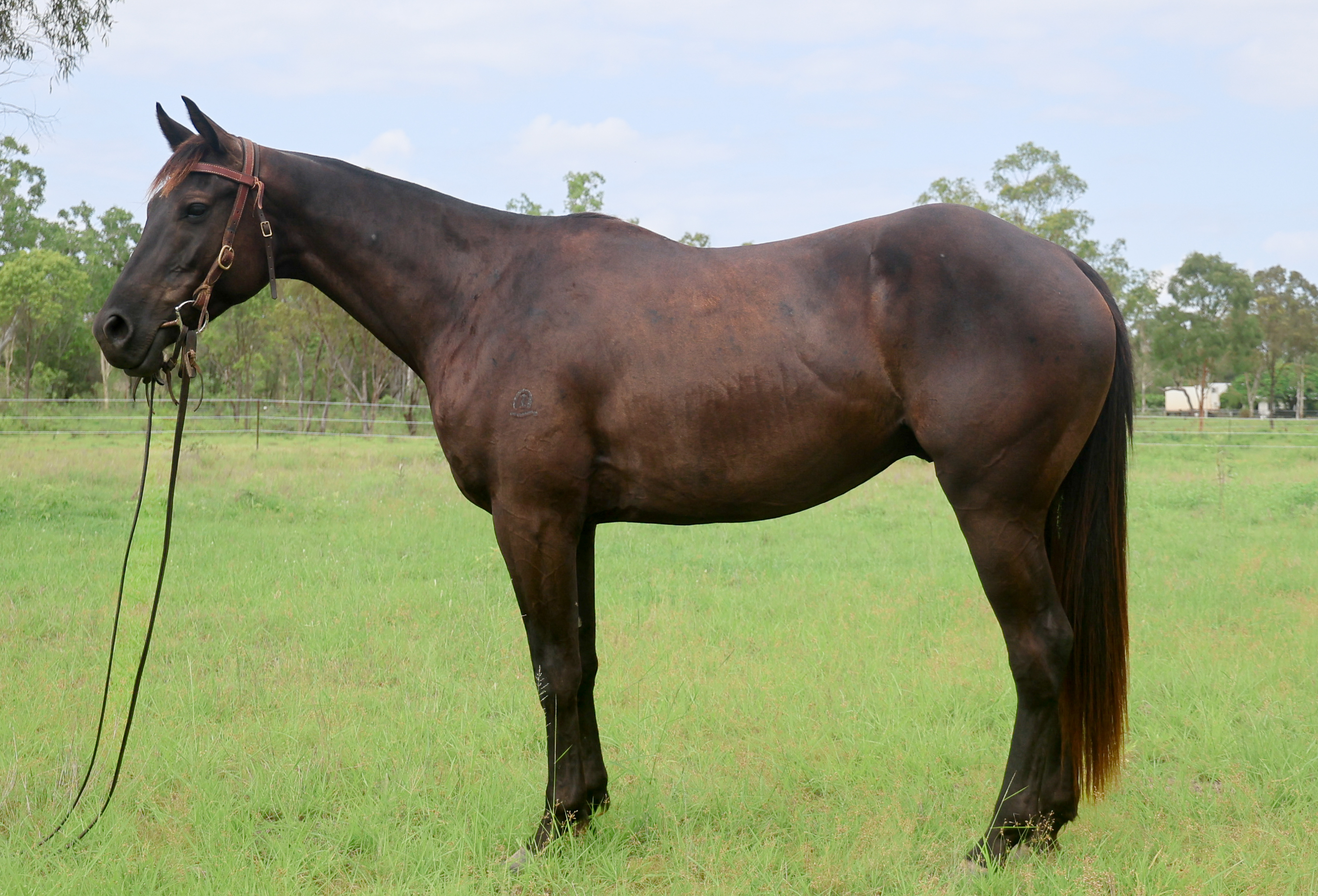 Good looking easy going gelding. Has done two rounds mustering. Oldest sibling just out of futurities and going well.