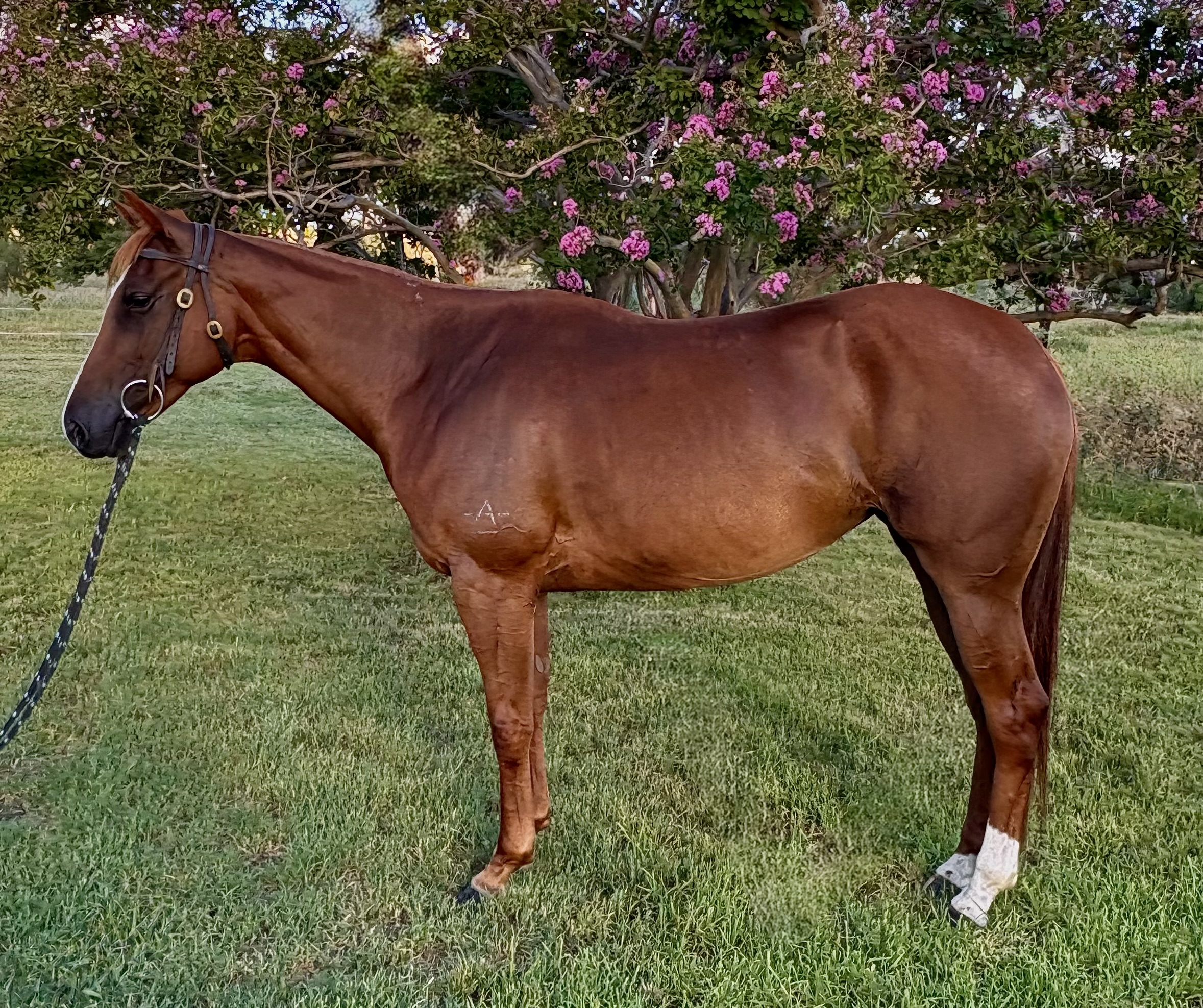 Lena was broken in as a 2 yr old and has had extensive mustering. Used to dogs, whips, bikes and traffic. Very quiet on the ground and under saddle ready to start her camp draft / challenge career.