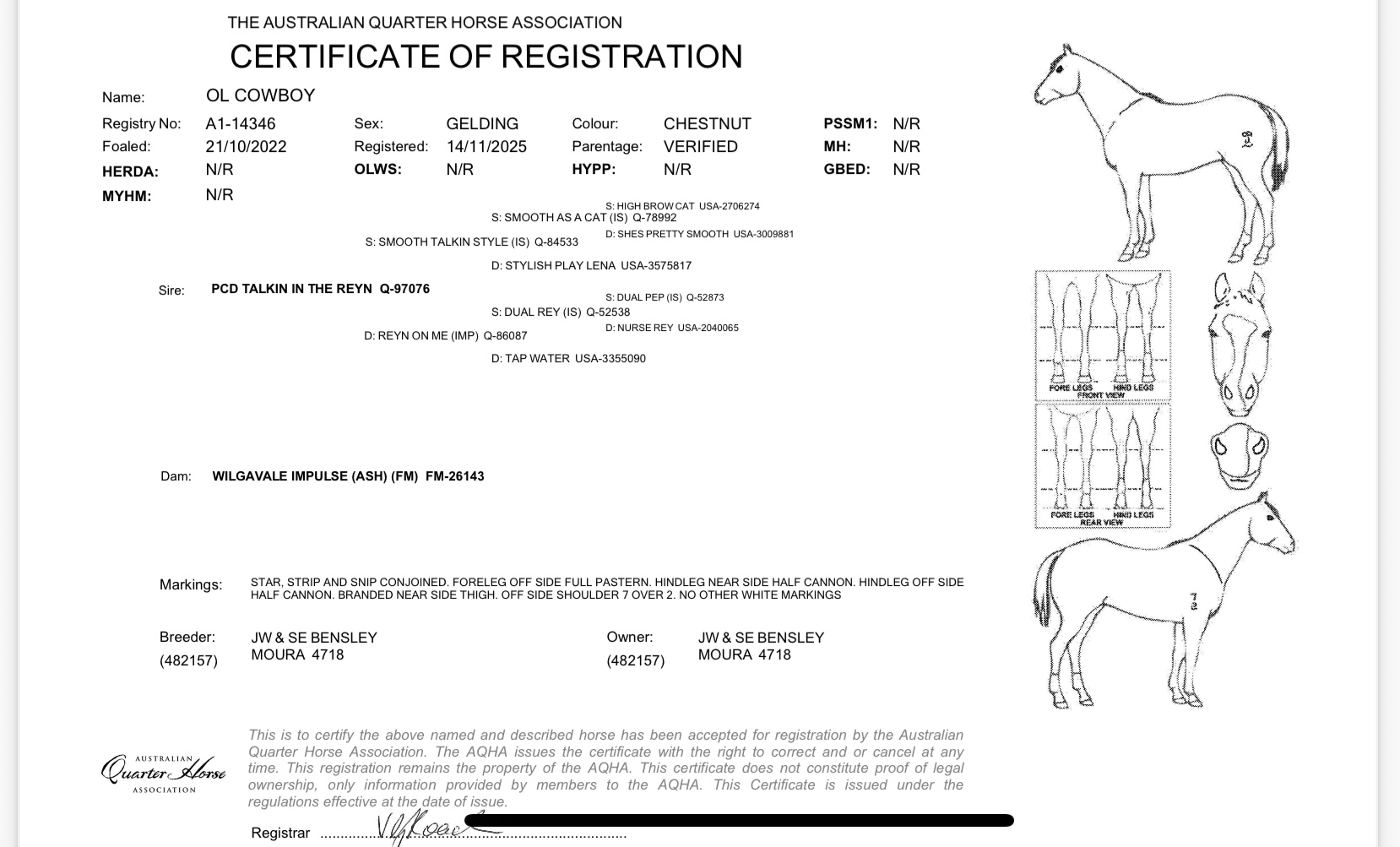 | Head shaking, stringhalt or locking stifle: | No |