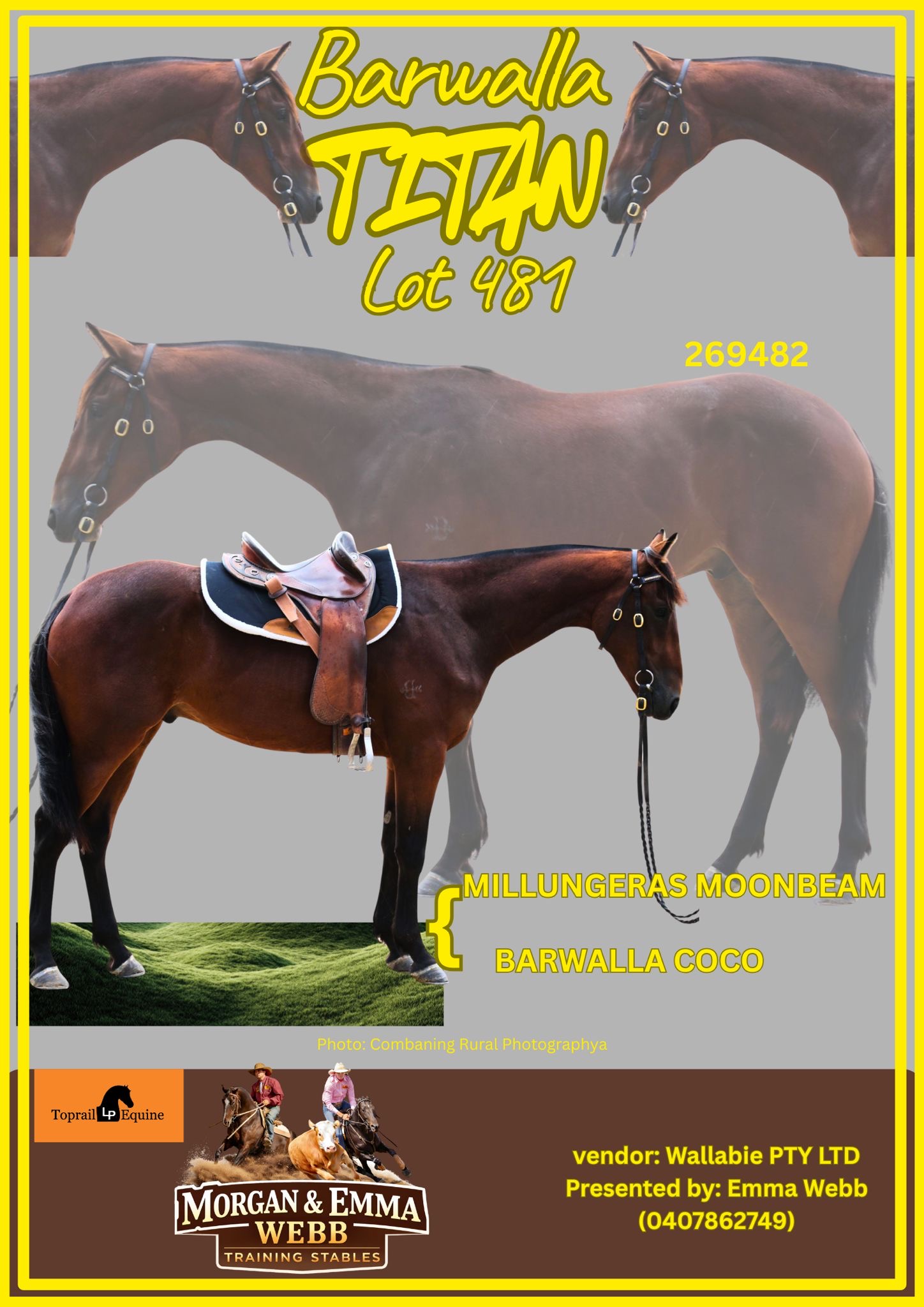 By proven sire Millungera's Moonbeam and out of our best Open mare in Coco. A super trainable horse with all the attributes to be a top performer. One not to be missed.