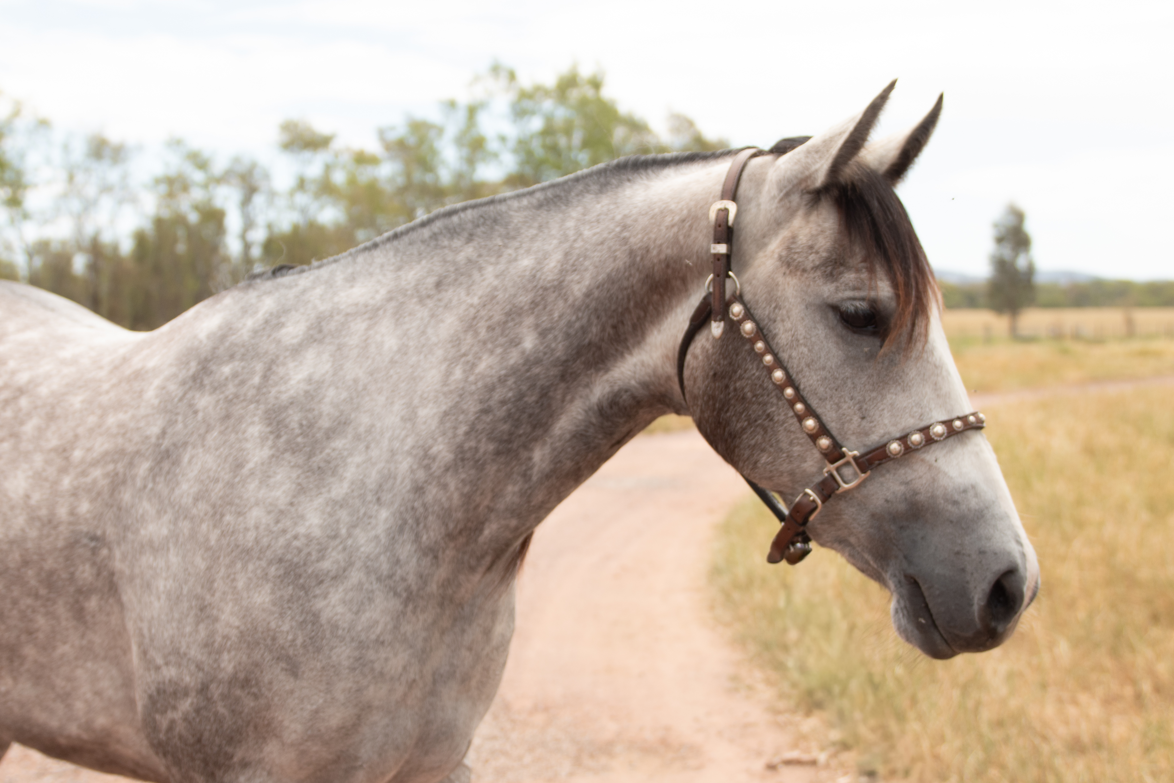 - Small scar on back leg from cut when a yearling