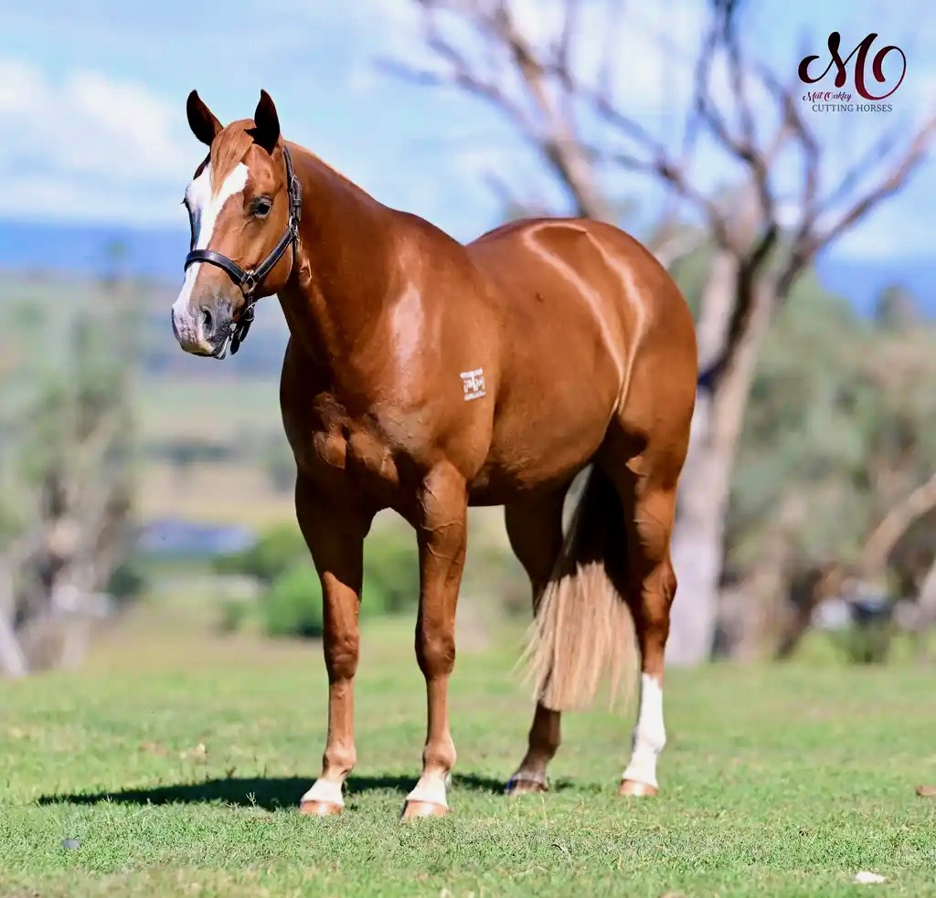 Sire: $9M Sire Smooth Talkin Style with earners across the cutting and cowhorse disciplines in the USA and has already sired multiple campdraft winners in Australia. Dam: Multiple campdraft finalist and cutout winner with scores to 90 from limited starts due to fence injury. Big strong 2YO started under saddle by David Manchon and commenced training with Mat Oakley in Oct 2025 - currently on track for the 2027 NCHA Futurity.