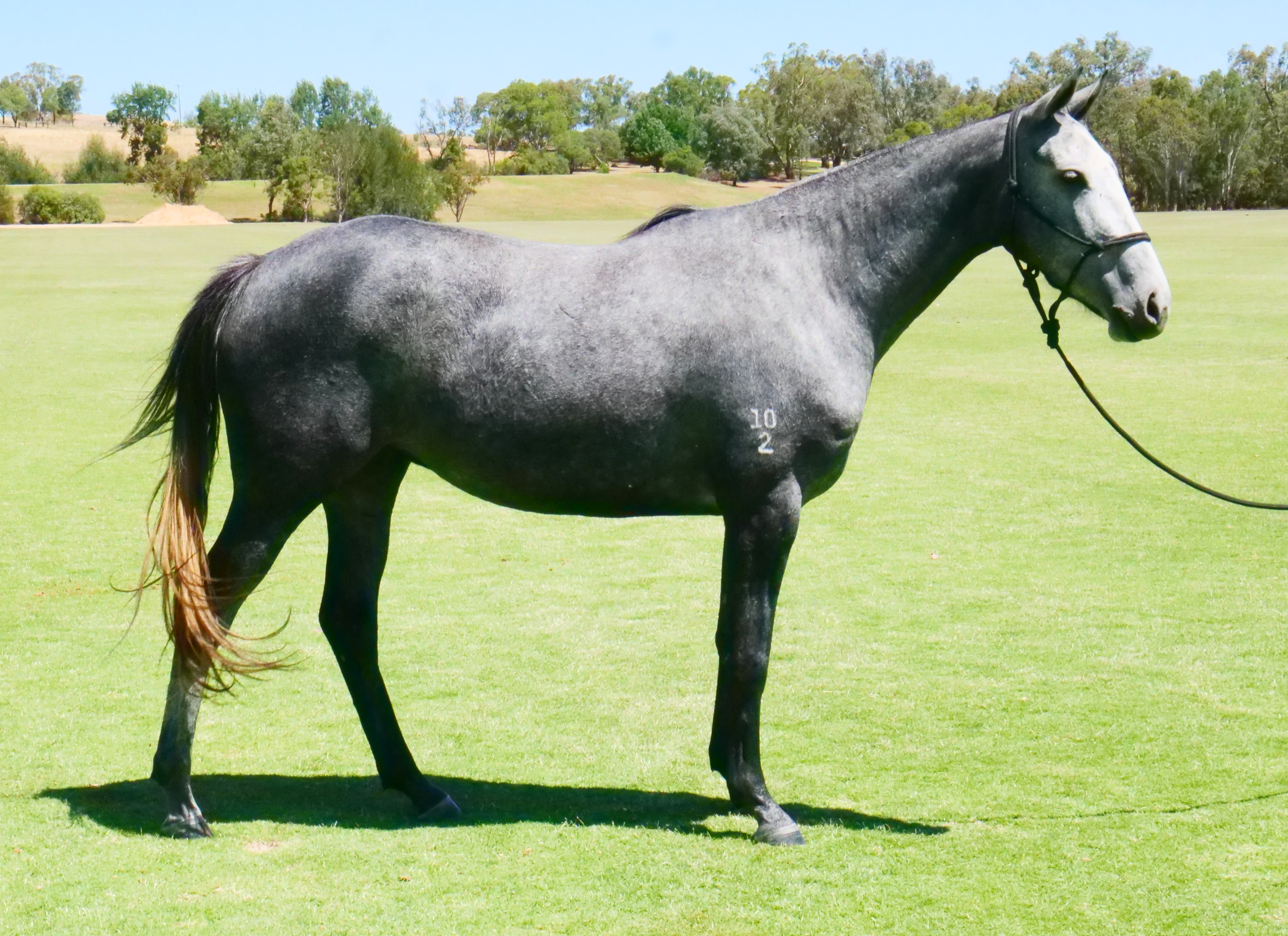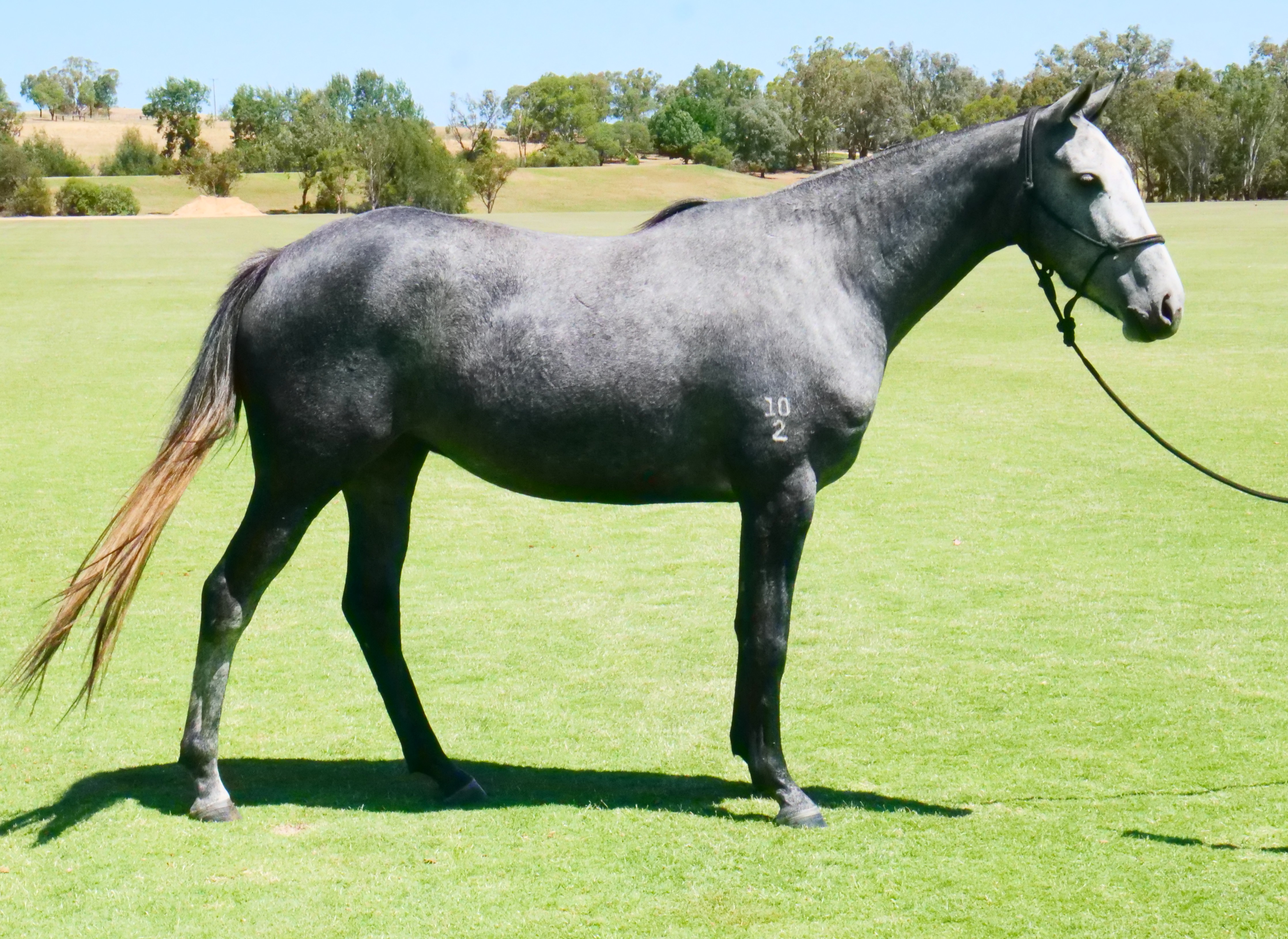 Garangula Nougat, bred by Schindler out of Tinge, has nice conformation. She missed her re-ride due to lameness, but she is a willing mare and should catch up quickly with consistent work.