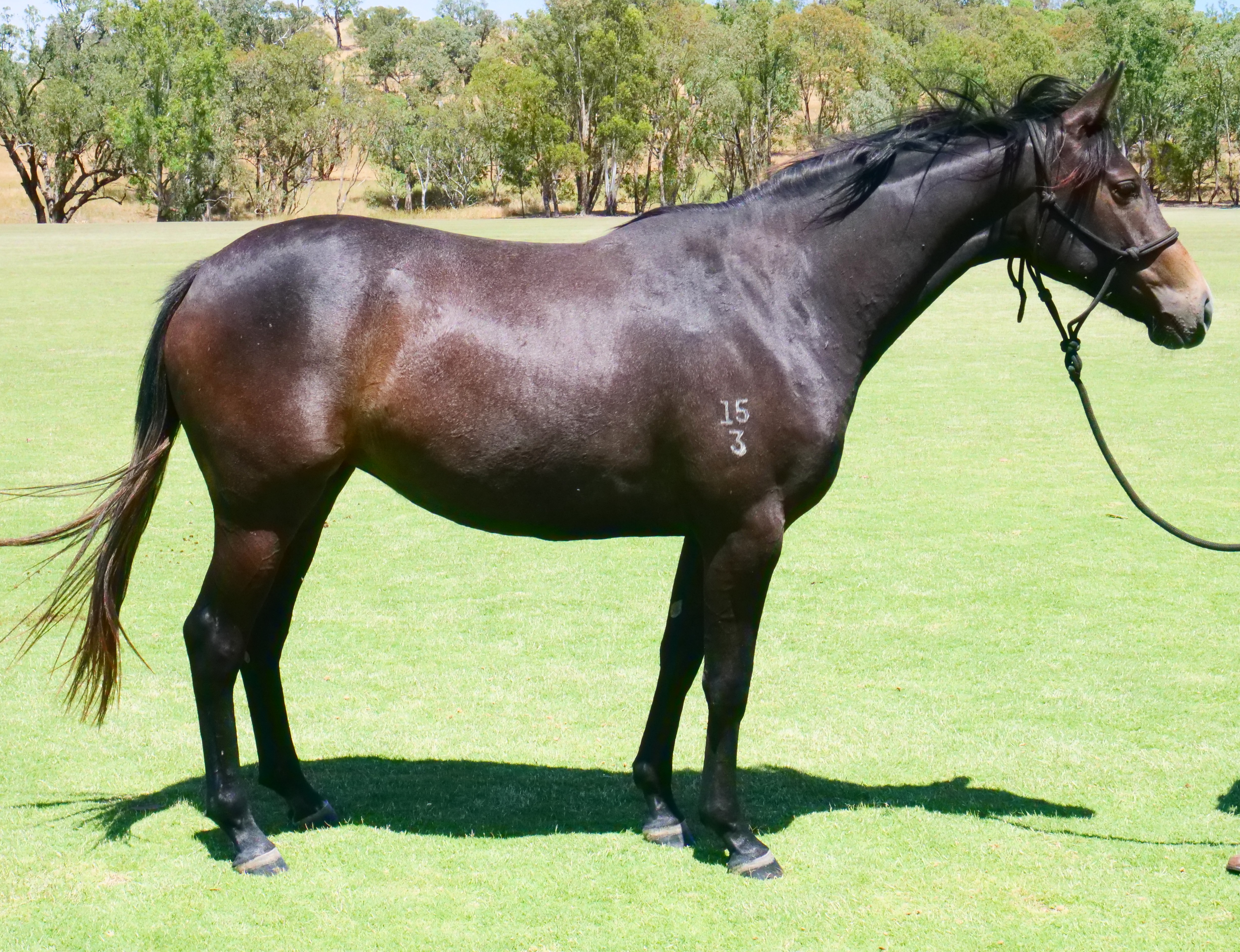 Garangula Wisper, by Lynx out of Tinge, is one of three triplets with great conformation. Athletic and willing, she shows natural ability and is an ideal prospect for a future polo career.