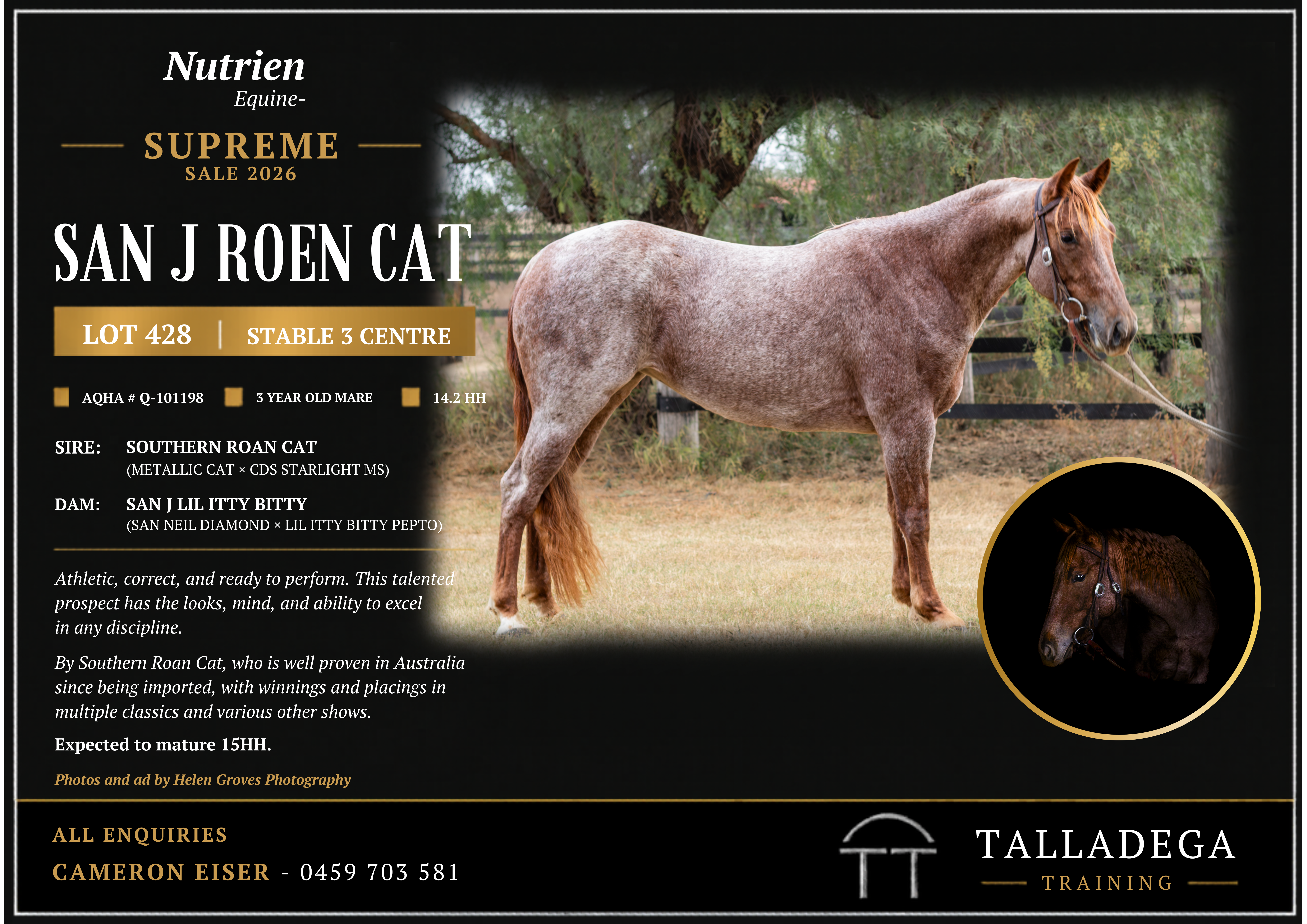 By Southern Roan Cat who is well proven in Australia since being imported. With winnings and placings in multiple classics and various other shows. Out of a strong performing dam line that needs no introduction.