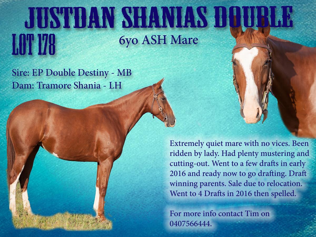 Extremely quiet mare with no vice. Been ridden by lady. Had plenty mustering and cutting-out. Went to a few drafts in early 2016 and ready now to go drafting. Draft winning parents. Sale due to relocation.