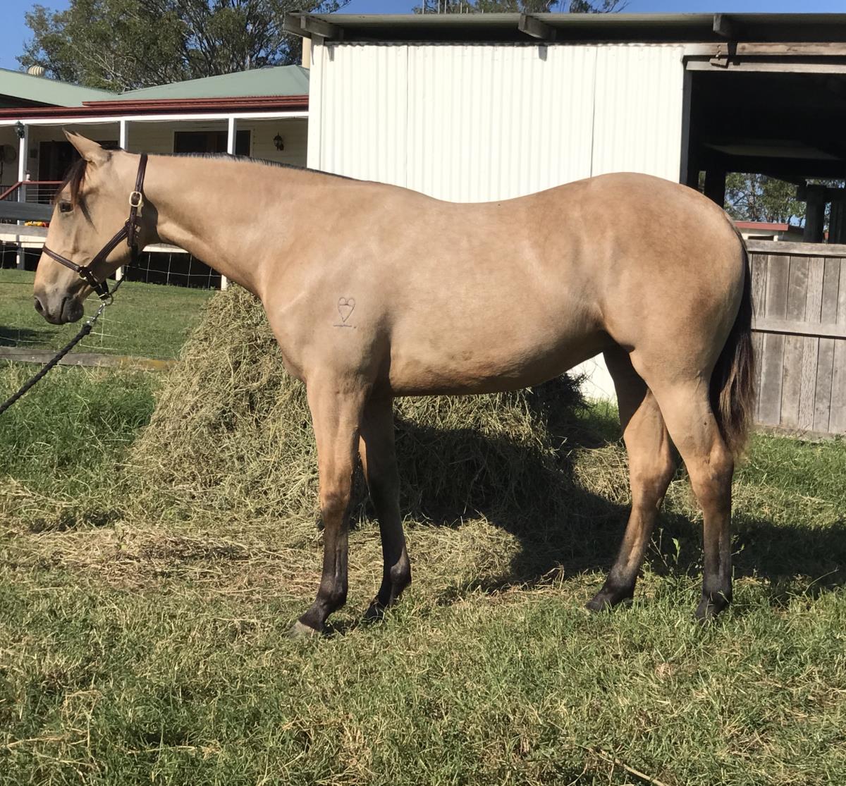 Impeccably bred, buckskin filly. A pleasure to work with. Intelligent nature and a fast learner. Spin Me Baby's breeding speaks for it's self. REGRETTABLE SALE.