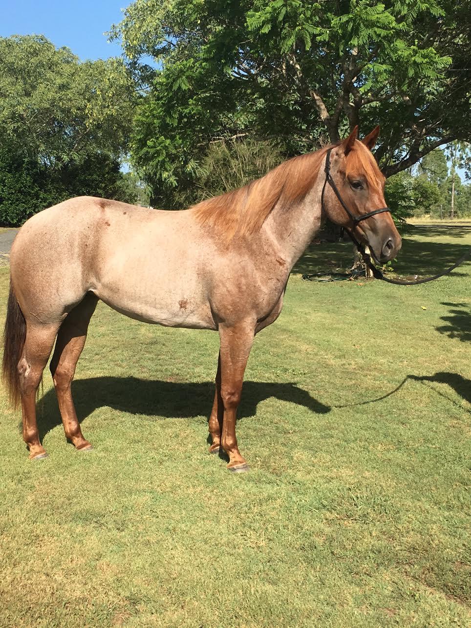 2014 red roan mare, 10 months cutting training. Half sister Highphalutin (2015 DDCC NP Futurity Champion and multiple cutting and campdraft finalist). Half brother The Lorax (2016 NCHA Amateur Futurity Finalist). Excellent confirmation and the foundation for any performance discipline.