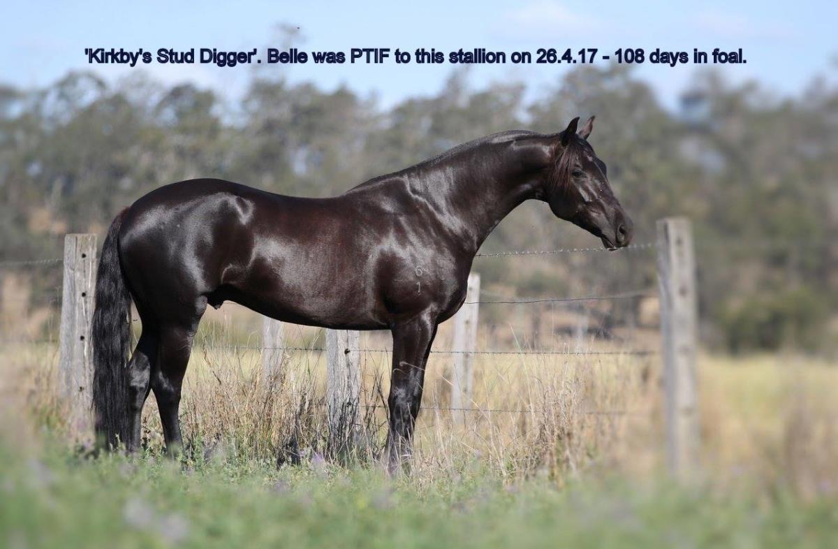 'Belle' is a very quiet natured, easy going mare. Has been ridden by Mum and kids around the property as well as attending competitions. Bred late to Kirkby's Stud Digger for a December 2017 foal (to be confirmed).