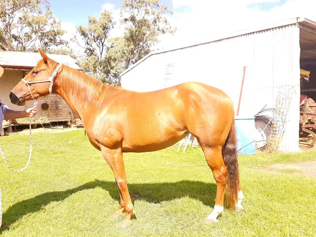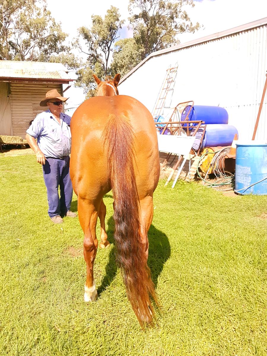 By outstanding IMP cutting sire "Intricatolena from an own daughter 49er Doc.  Dam-1990 RUPolox horse Aust. 200 Hi-point Polox horse.  Dam of 2017 Hi-point polox horse.  Points in drafting & cutting. Unshown due to injury. PTIF Boobook Royal Catt son of Sophisticated Catt (USA) 0435 752 251