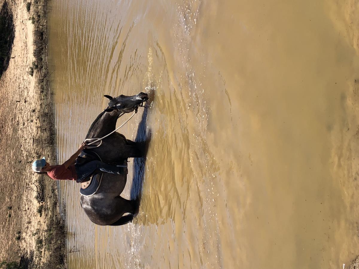Tyrell Park Dual Storm, a beautiful, athletic grey filly who has had a full cutting training program. She has a good length of rein and is a very soft mare. Has had plenty of mustering and feedlot work.