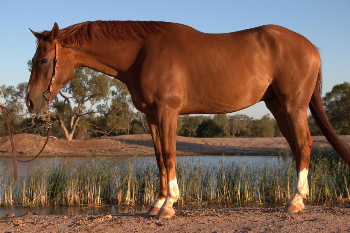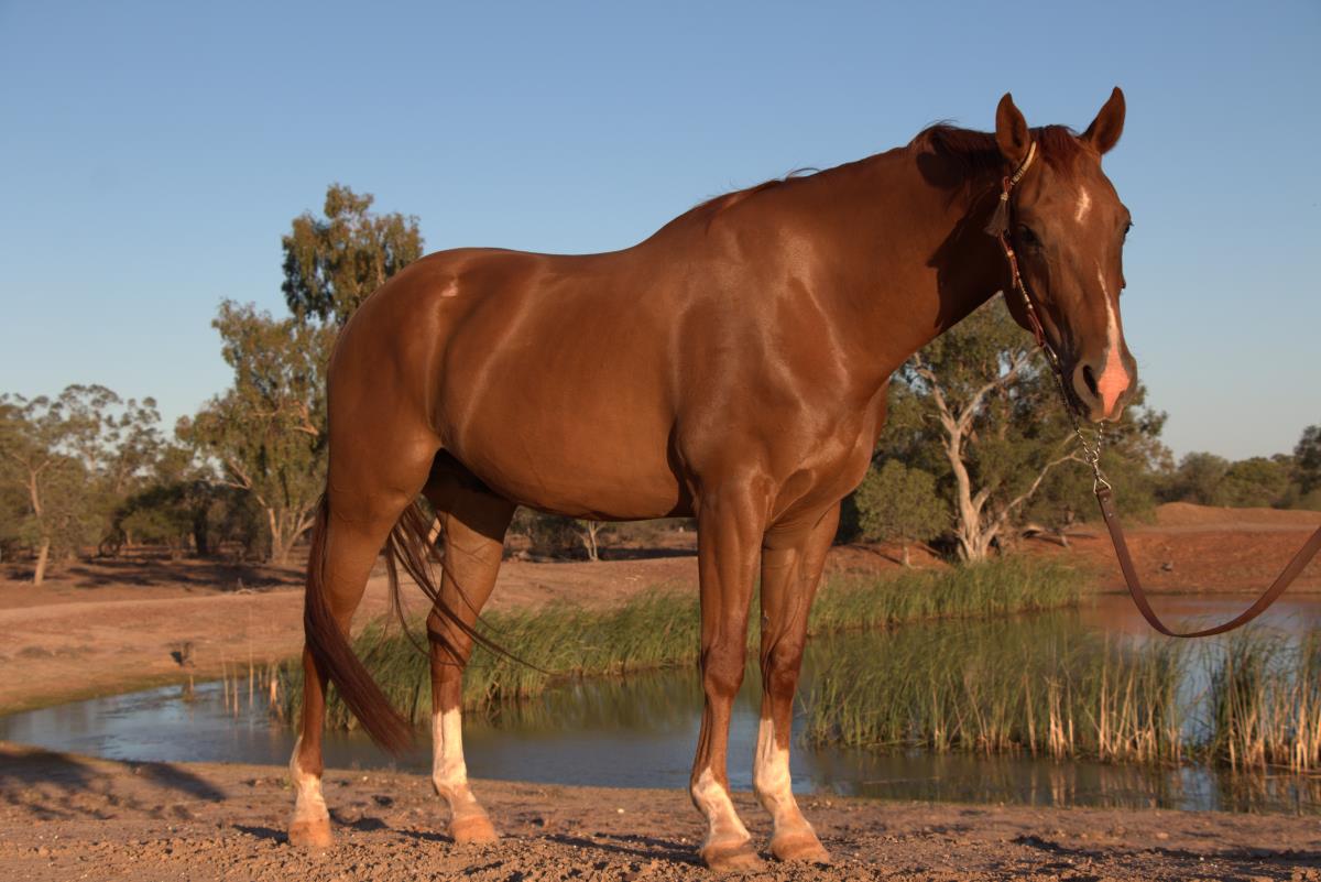 A very flashy chestnut four year old registered quarter horse gelding. Kalyra Lenas Panther is a smart horse who has the miles under his belt, with extensive mustering and a good foundation. Bagheera has correct conformation and is lovely to ride with a soft mouth and a big stop. He is developing three even paces with stops and rollbacks. He is athletically built standing at 15.1 hands and will go all day. This boy has it all, looks and ability to be successful in all areas from the show ring to cutting, drafting and challenges. Bagheera is one of the last foals by the now deceased imported sire '' A PINK PANTHER''#Q-69815 who is the son of ''PEPTOBOONSMAL''. His dam " LENAS MINT" Q-69815 also deceased is half sister to the top drafters " ROC STARS MADONNA " and " PLATINUM STAR. He is easy to do anything with rug, catch, shoe, wash, loads on both truck and float with out dramas. Do not miss out on the rare opportunity to have one of the last PINK PANTHERS.