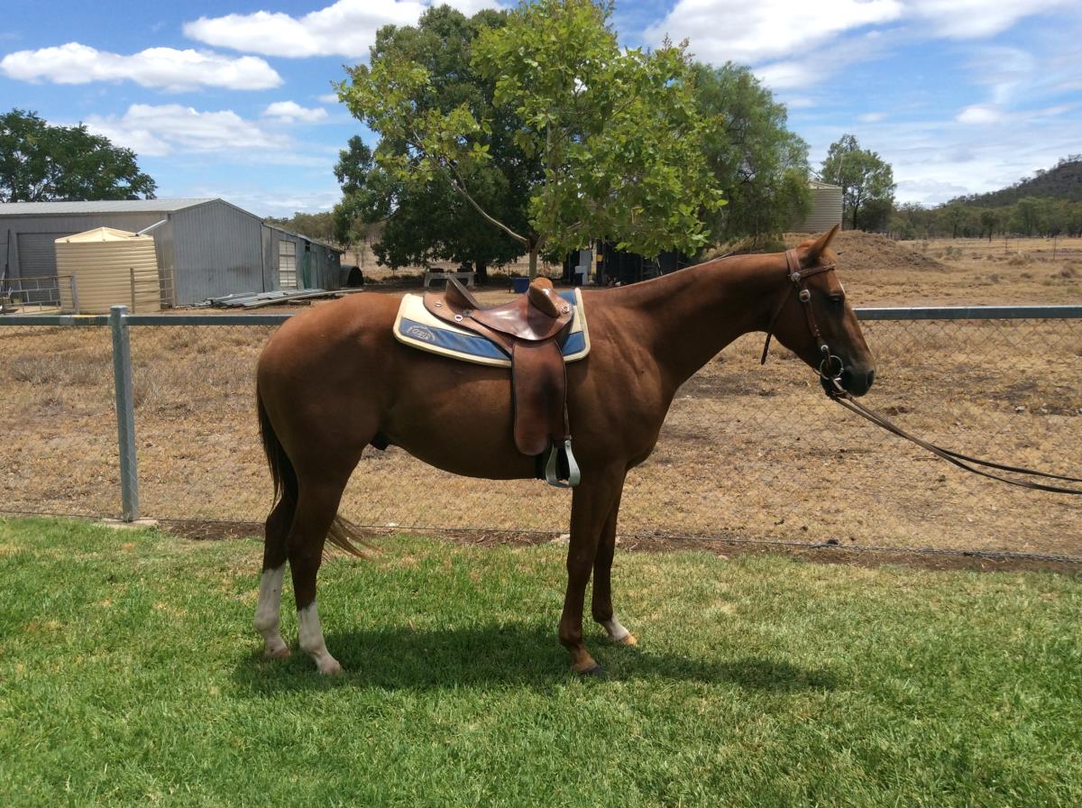 A nice moving gelding with natural cow sense. Cutting out and chasing cattle very well. His full sister and 3/4 sister are both campdraft winners. Very quiet, ridden by a lady and good after a spell. Ready for a start.
