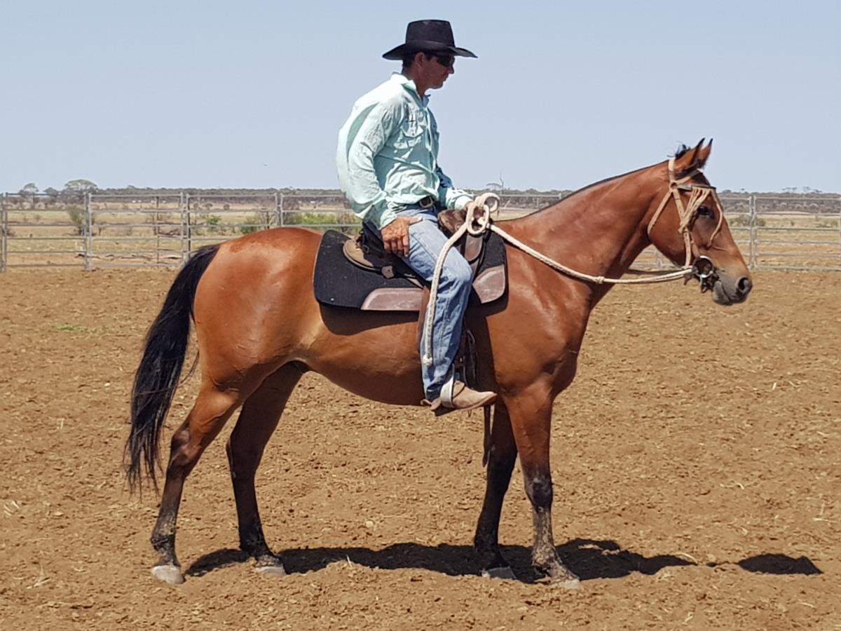 BJ is a big strong gelding that has done plenty of mustering and chasing cattle and he cuts out very well. Has had a few starts in futurities and competing in the classic. Easy horse to ride and have around.