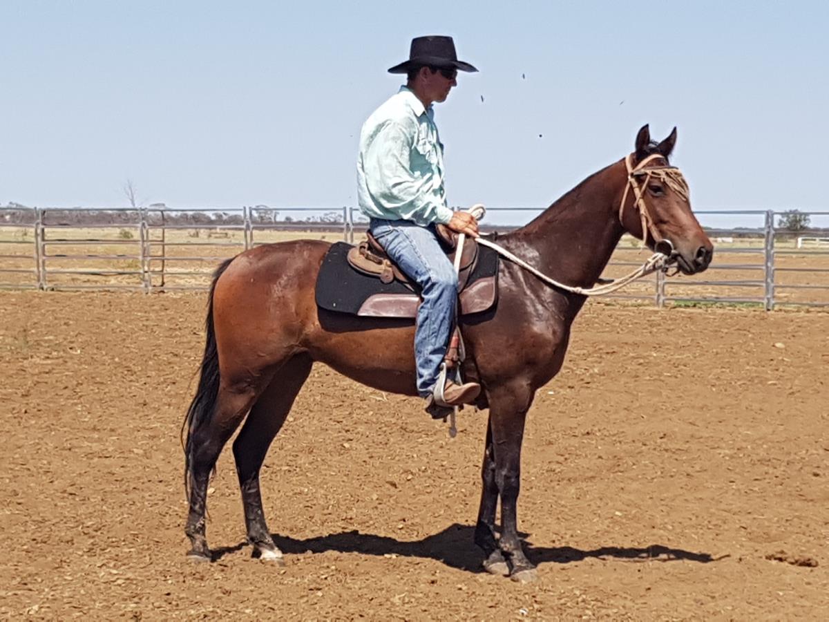 Beautiful gelding with 2 years in the Classic. Had mustering and works cattle really well. Roplay is a lovely soft, smooth travelling horse. We think a lot of him, in the right hands he will go a long way drafting.