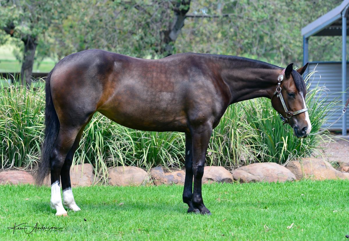 Sire needs no introduction. Dam was a talented trained cutting mare and dam of Destinys Sophisticatt a top cutting horse, Madam Chisum (also in the sale at Lot 364), and Mr Sylvester a trained cutter and drafter who ran 4th in the 2018 Classic.