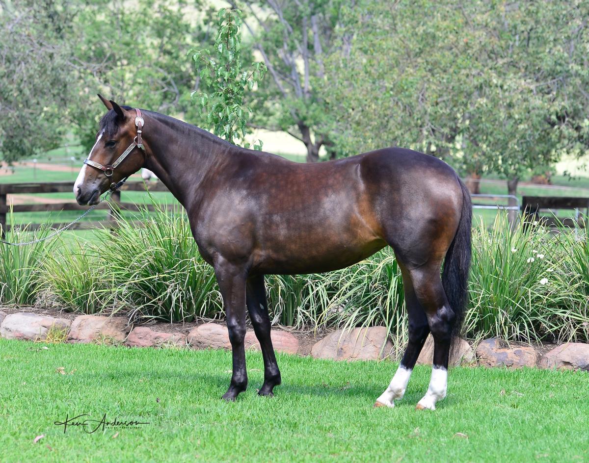 Sire needs no introduction. Dam was a talented trained cutting mare and dam of Destinys Sophisticatt a top cutting horse, Madam Chisum (also in the sale at Lot 364), and Mr Sylvester a trained cutter and drafter who ran 4th in the 2018 Classic.