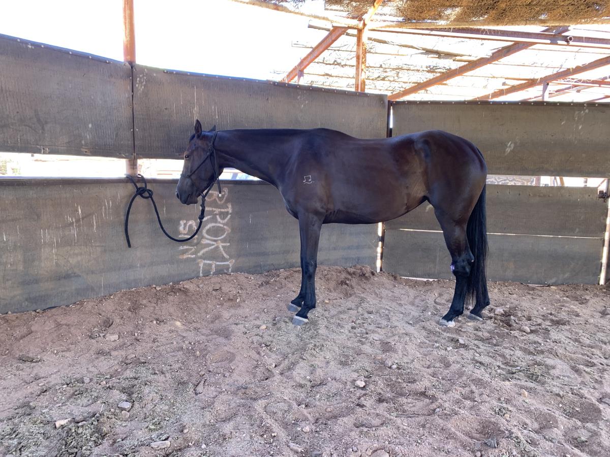 This stylish black mare has done the miles mustering and has done some light cutting out. She is easy to load, good to shoe and will make a solid campdraft horse.