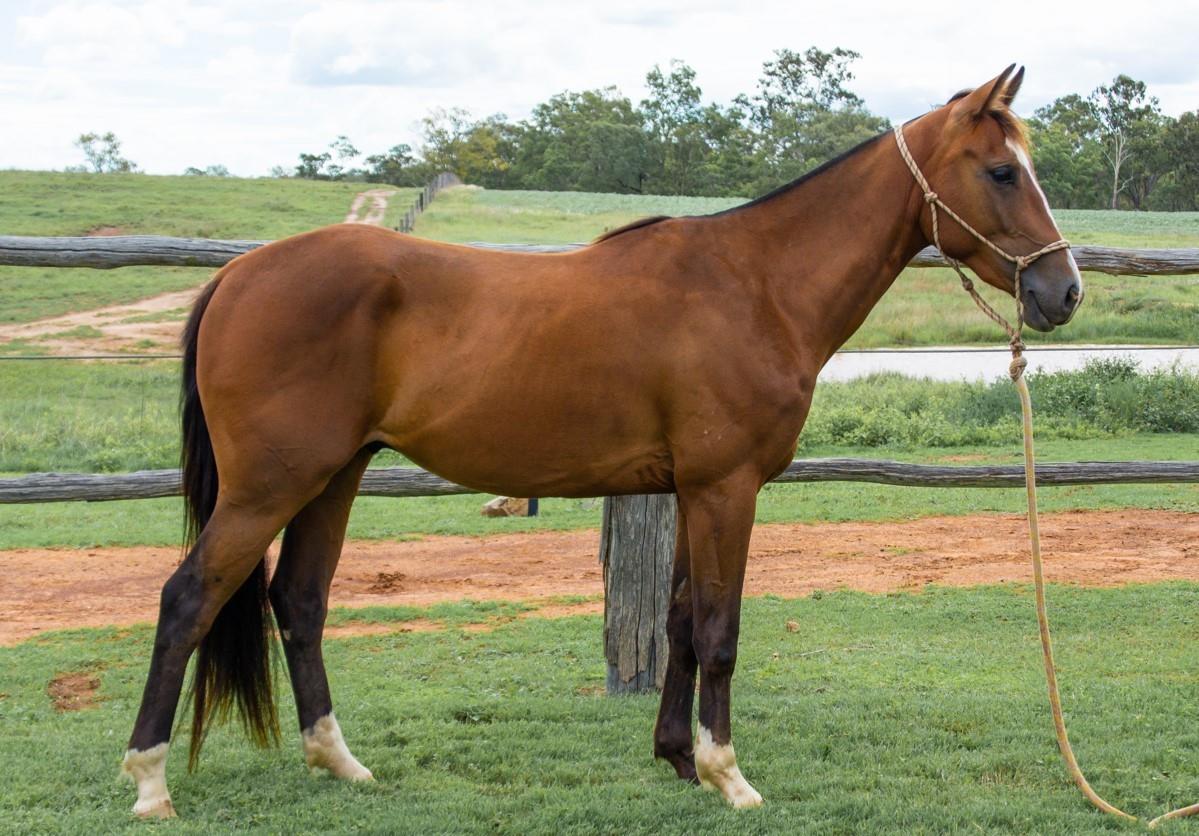 Has a good temperament. He has broken in well, had mustering and is showing potential around cattle. His dam is a Novice Campdraft mare with many cutout wins. HIs sire is an Open Campdraft horse with huge cutout success.