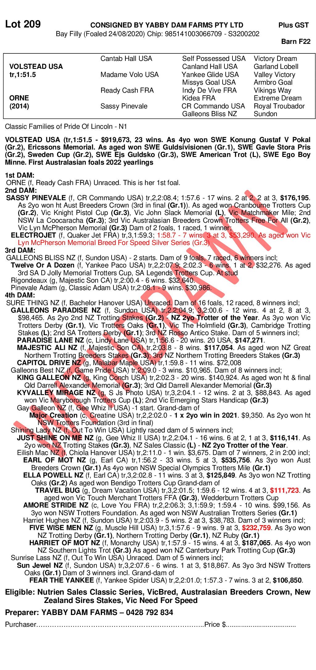 2020 FILLY OUT OF ORNE